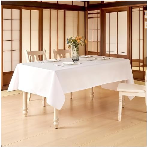 Actnow テーブルクロス 無地 140x220cm 耐熱 厚手 長方形 (ホワイト)