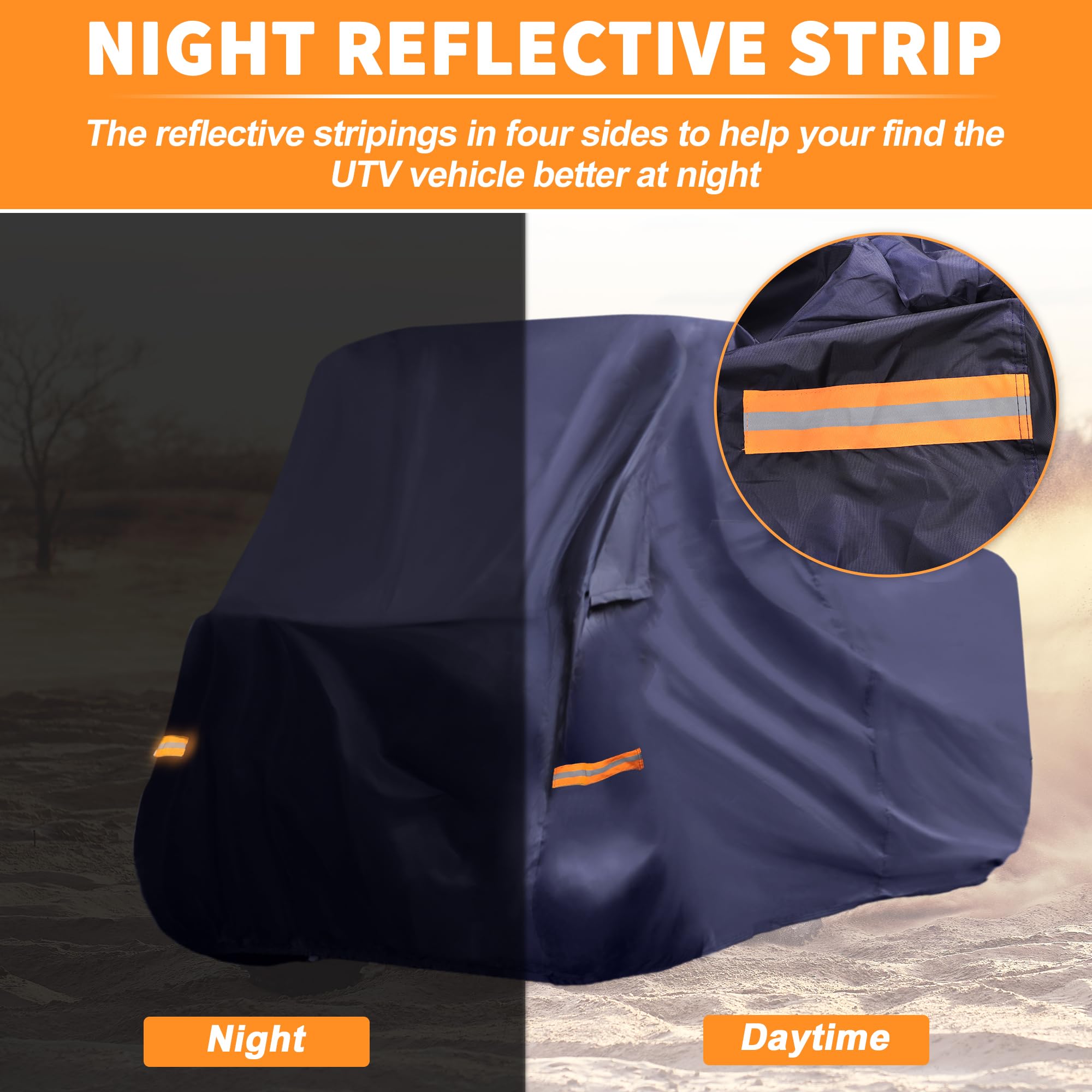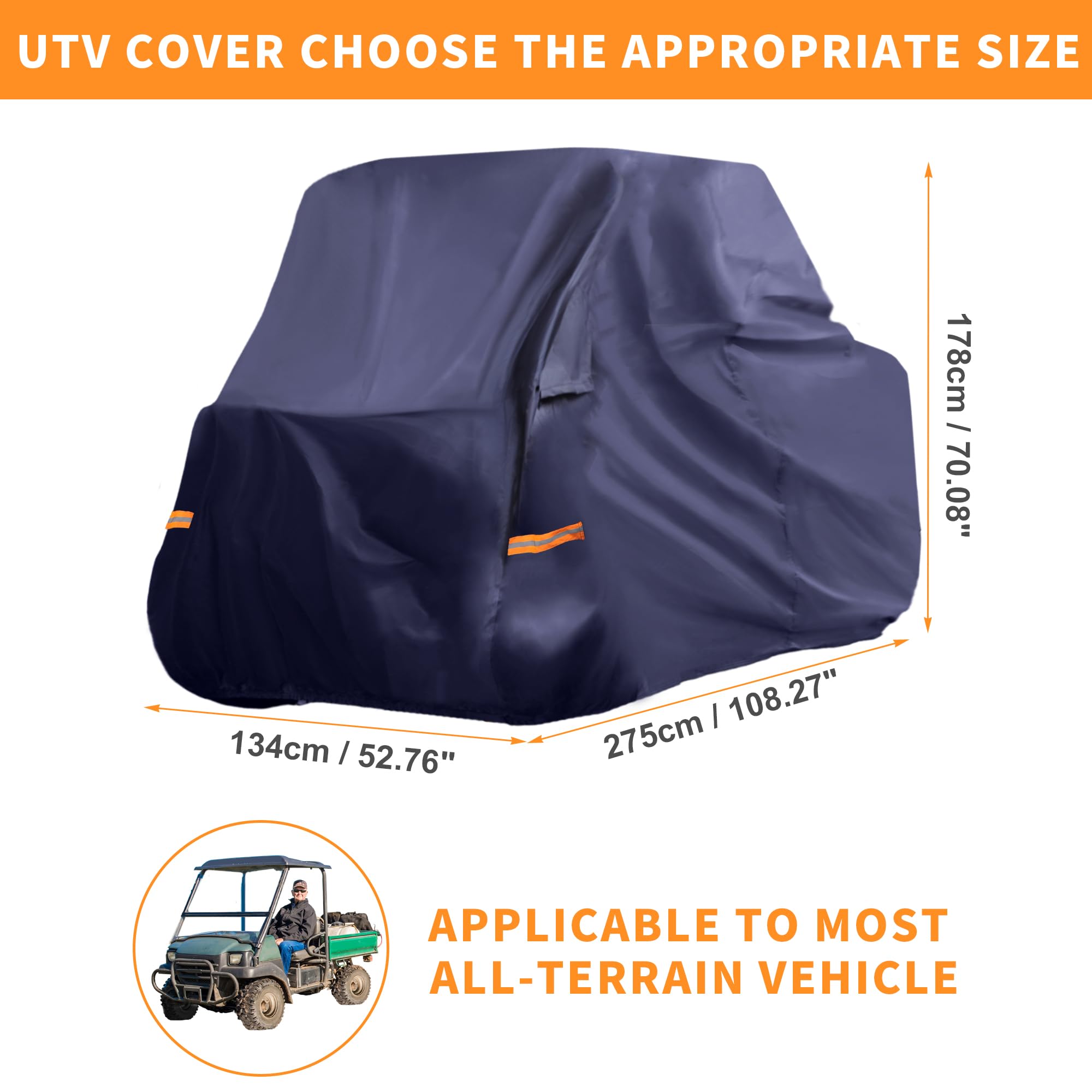 説明:防水性のある210D-PU素材とPUコーティングを内側に施し、夏と冬の屋外および屋内での使用に二重の保護を提供します。二重糸のステッチで、より長い寿命と優れた防水性能を実現します。雨、日光、雪、ほこりからUTVを効果的に保護します。調整可能なバンデージとバックルで、風に吹き飛ばされるのを防ぎ、風に強い性能を発揮します。カバーを使用しないときの簡単な収納のための収納袋が付属しています。仕様:カラー: ネイビーブルー素材: 210D-PU詳細サイズ: 275x134x178cm / 108.27