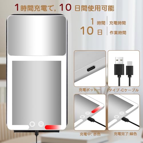 折立鏡 LED化粧鏡 PUレザー 折りたたみ式 スタンドミラー 三色調光 卓上ミラー 女優ミラー 指タッチ 充電式 メイクアップ VIKMARI(ホワイト)