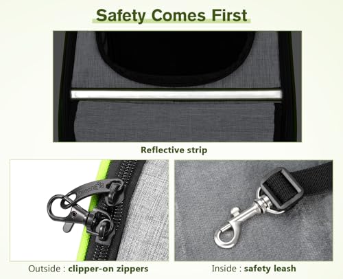 BTtime ペットキャリーバッグ 猫用キャリングバッグ 折りたたみ式 ペットキャリー 中・大型猫用・小型犬 飛び出し防止 傷防止 ベルト脱着可 洗えるマット 通気性 軽量 大容量 耐荷重9KG お出かけ/旅行/ドライブ/防災/避難用 (グレー)