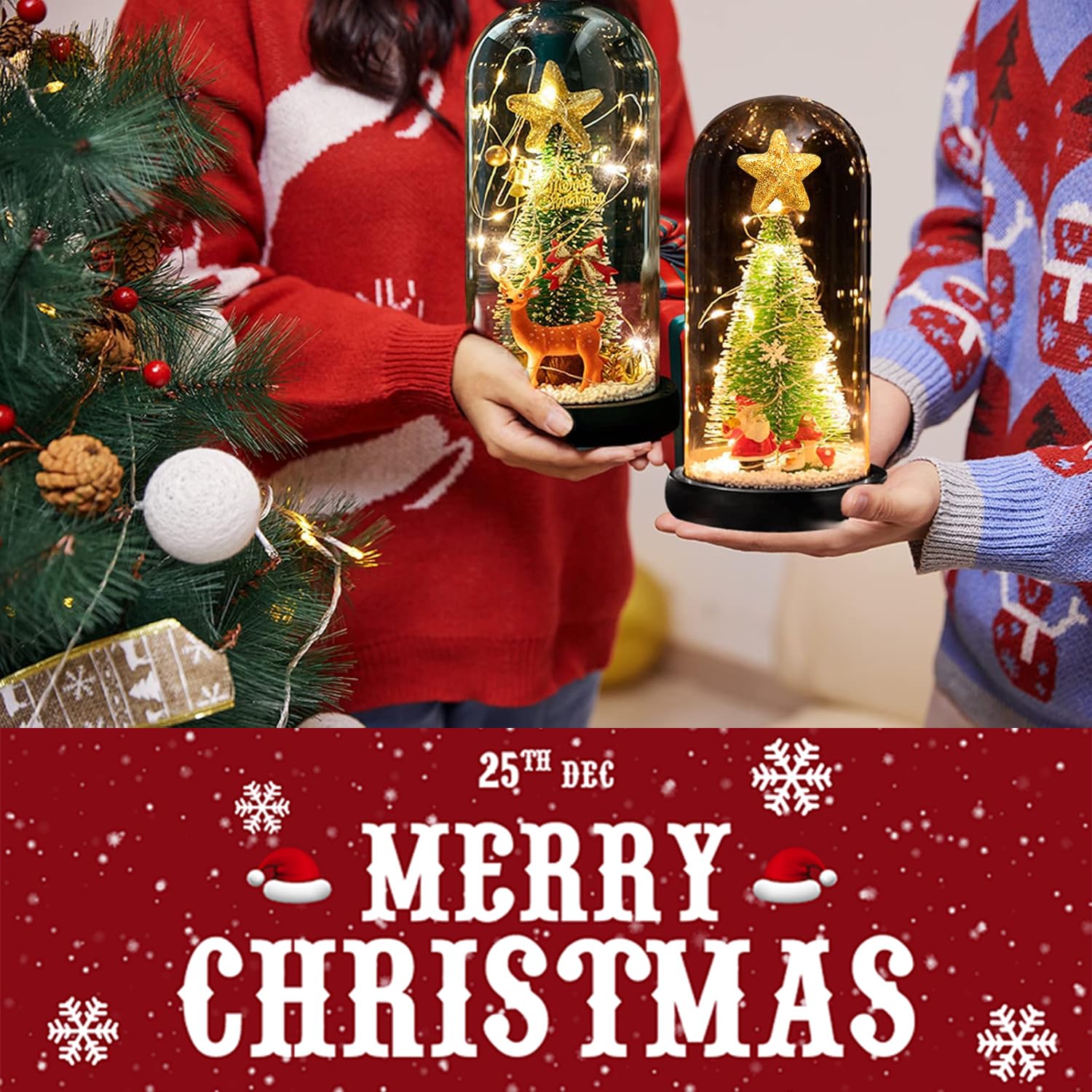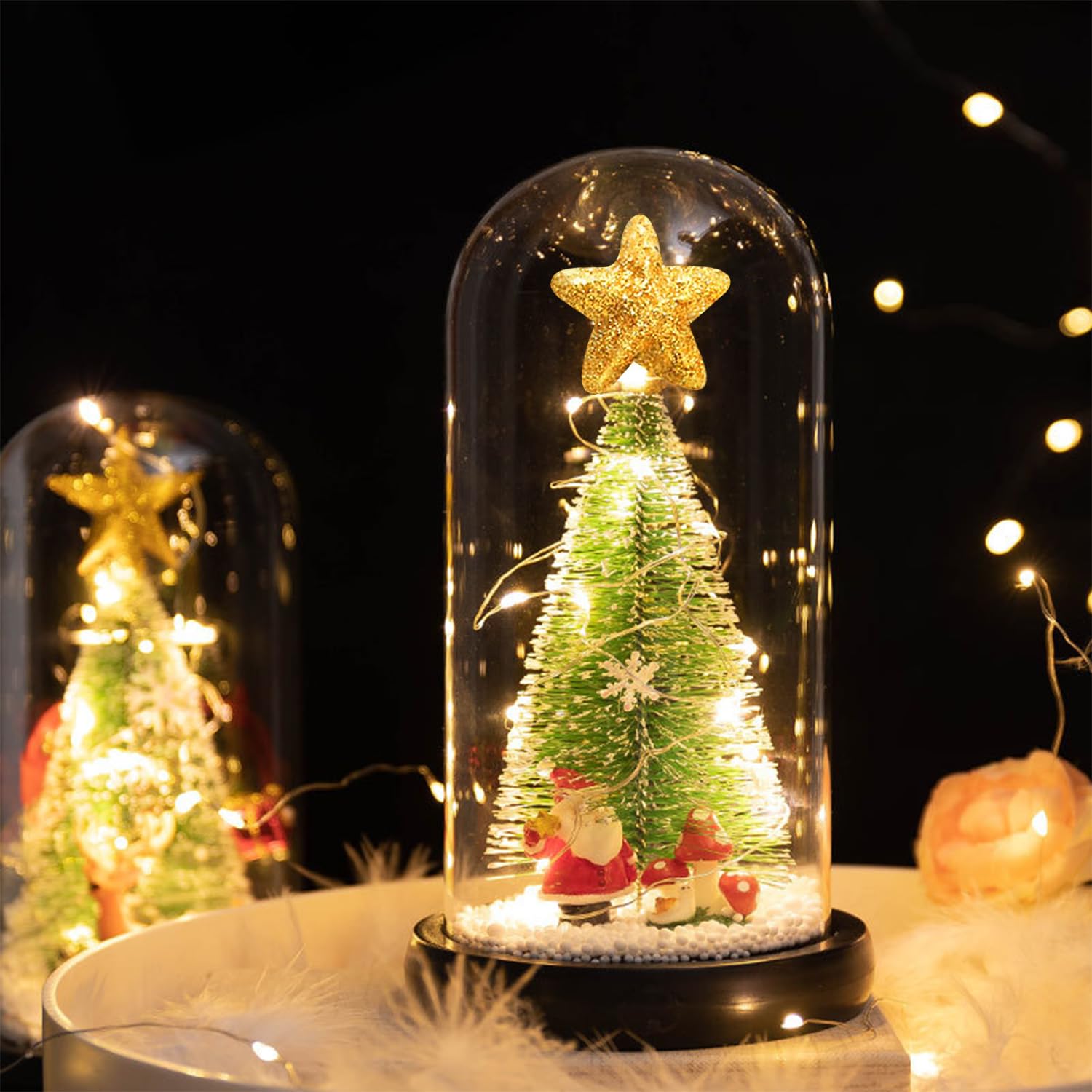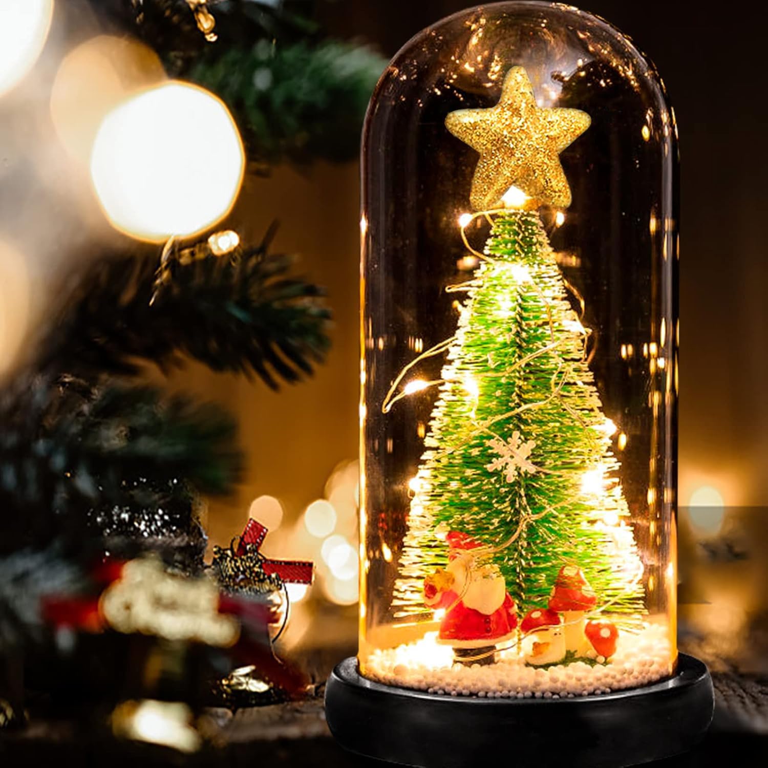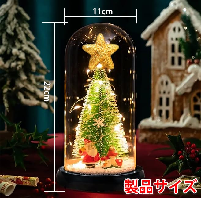 クリスマスツリー ガラスドーム 卓上 電池式 LEDライト ミニツリー クリスマス飾り クリスマスギフト サンタスノーボール おしゃれ 装飾
