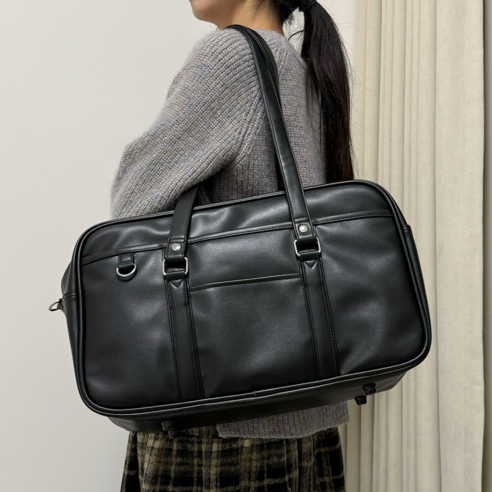 説明この 17L 大容量スクールバッグ は、高品質なPUレザーで作られており、学生の日常使いに最適です。お子様へのギフトとしても理想的な選択肢です。クラシックでスタイリッシュなデザインは学生に非常に人気があり、広い収納容量でA4サイズのノートや教科書を安全に収納できます。さらに、タブレットや文房具、小物も収納可能です。 このバッグは、波士頓バッグスタイルを採用していますが、学生が片方の肩にかけたり、リュックのように背負ったりする習慣を考慮して、改良されています: 長めにデザインされたショルダーストラップ は、片肩掛けだけでなく、リュックのように背負うこともでき、重い荷物を持ち運ぶ際にも快適に使用できます。通学やお出かけ時に便利です。