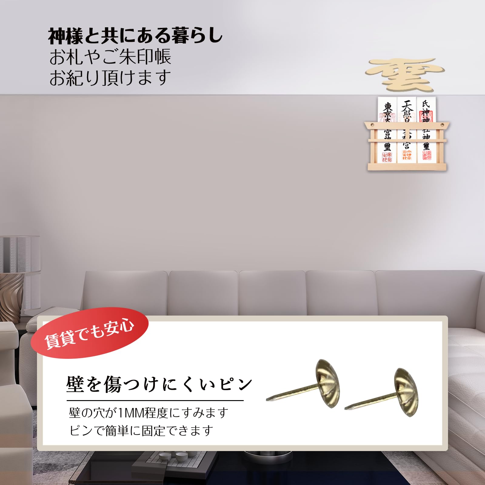 神札ホルダー 神棚 賃貸 穴あけ ない お札立て 御札立て 破魔矢置き DoocliB おふだ立て ない・掛け型兼用 取り付け簡単 石こうボード用プッシュピン・木ネジ 付属 洋室合う モダン 天然ブナ(一社神棚)