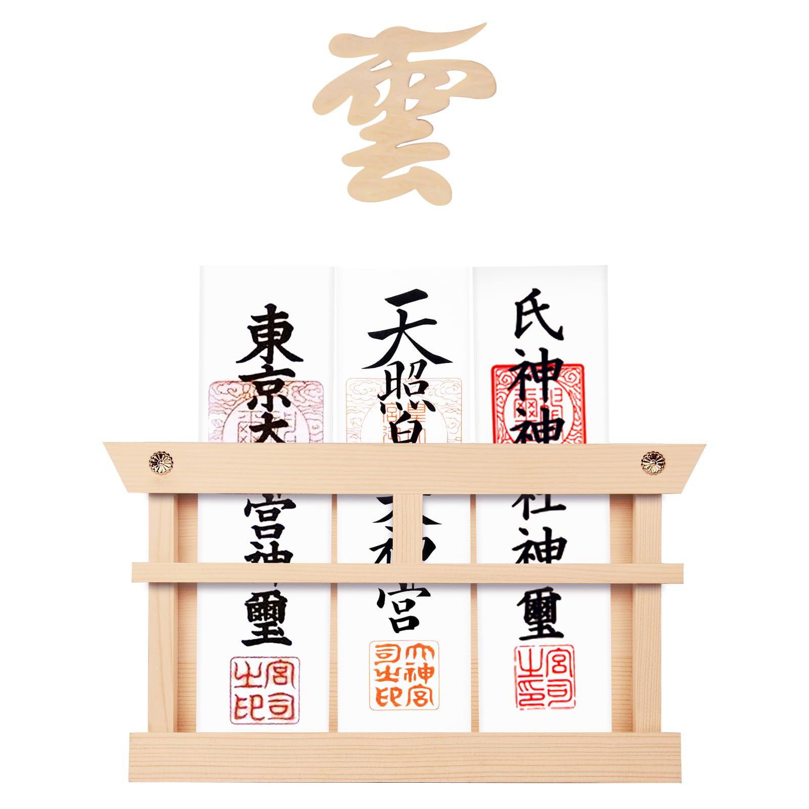 TAKOIKE 神棚 [神棚と神棚 雲セット] お札立て 菊の釘2本 神棚 壁掛け 穴開けない 鳥居付き お札立て 菊座付き お札立て 置き型 壁掛け 兼用 簡易神棚 お札 立て 雲板付き 御札立て 取り付け簡単 破魔矢置き 白松