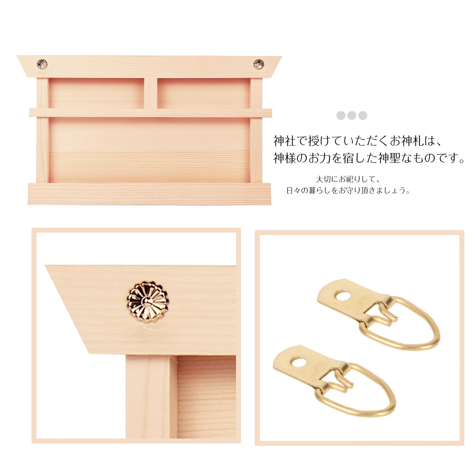 TAKOIKE 神棚 [神棚&神棚 雲セット] 神棚 壁掛け 菊の釘3本 神棚 壁掛け 穴開けない 菊座付き お札立て モダン お札立て 置き型 壁掛け 兼用 簡易神棚 穴開けない お札 立て 雲板付き 御札立て 取り付け簡単 白松