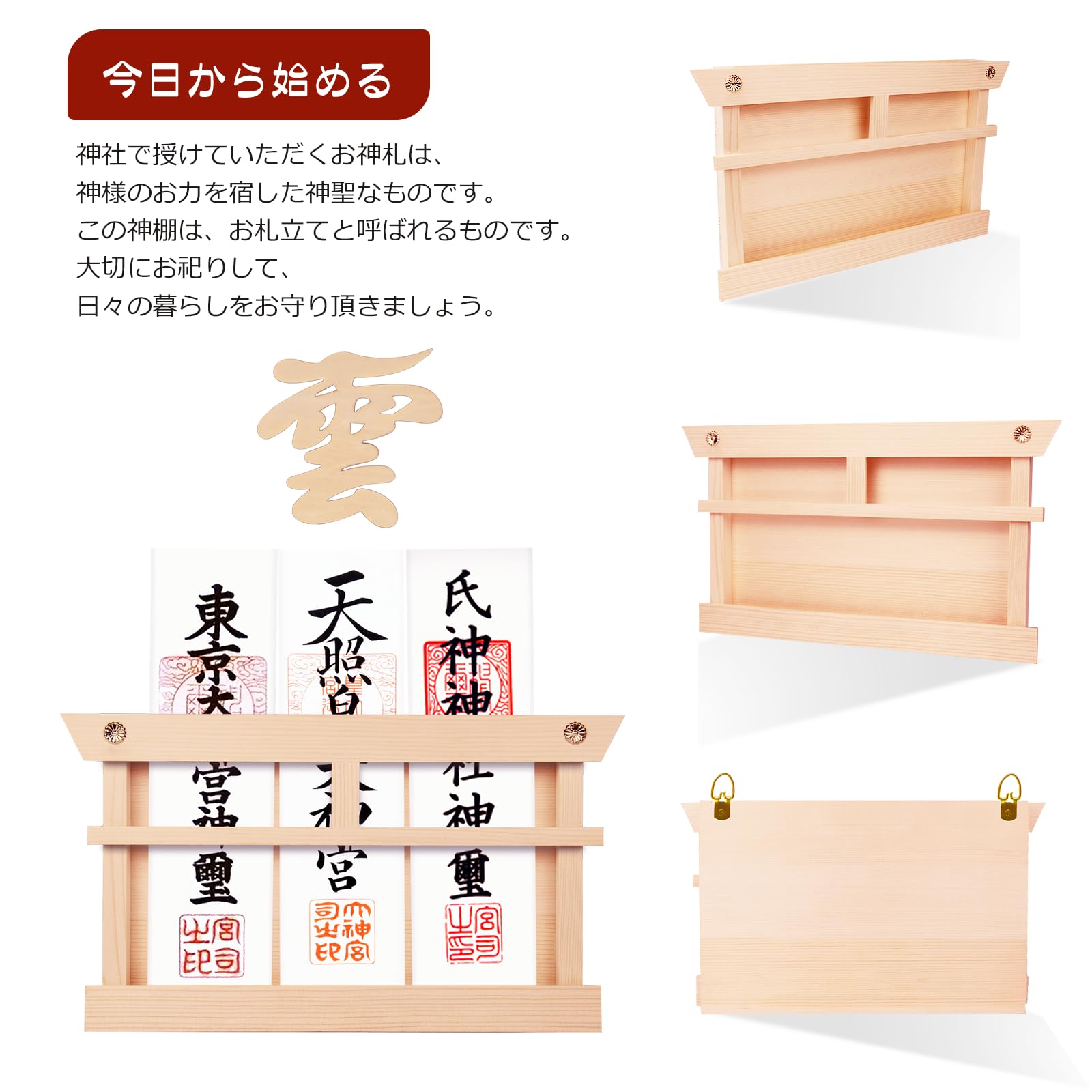 お札立て 鳥居付き 神棚&雲セット 御札立て お札 御札 神具 お札立て モダン 天然木使用 簡易神棚 おしゃれ 神棚ホルダー 置き型 壁掛け 簡単設置 お参り (神棚3)