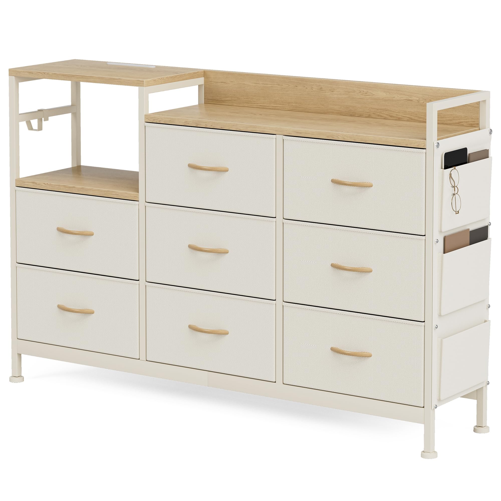 IKIFLY チェスト収納 タンス 棚付き 箪笥 リビング収納 箪笥 ワイドチェストLEDライト付きおしゃれ 収納ケース 引き出し 大容量 北欧 USBポート付き洋服タンス 布製 収納ボックス シンプル 整理タンス 寝室収納 一人暮らし3段8杯 【幅132×奥行29×高さ88cm】 (ベージュ)