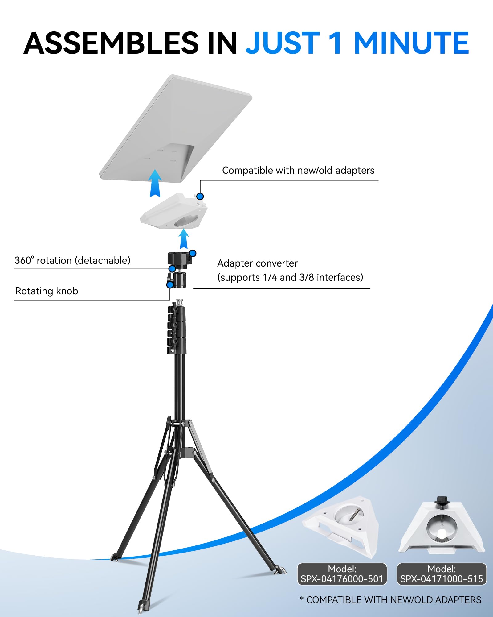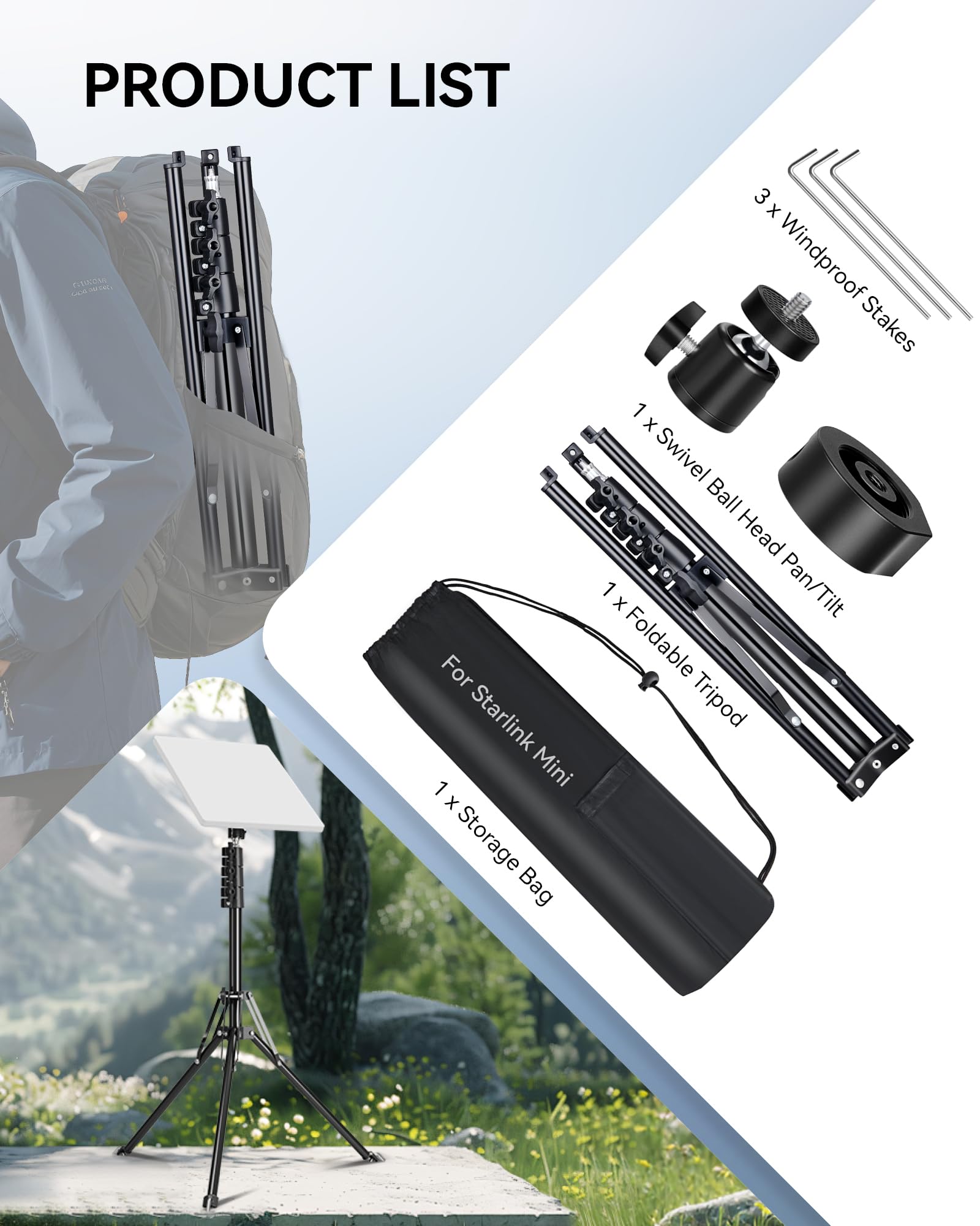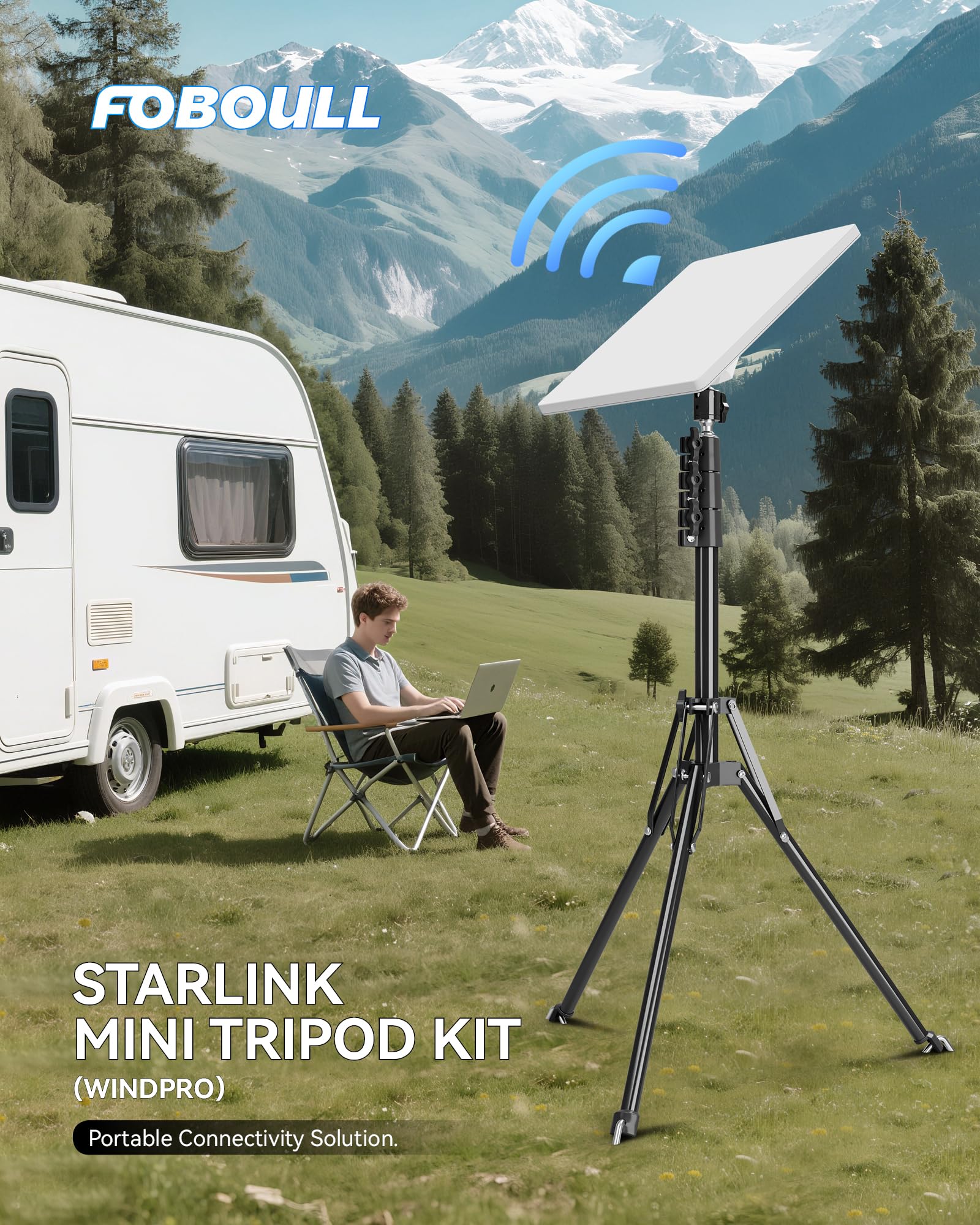 Foboull Starlink ミニ三脚マウントキット、WindPro耐風デザイン、調節可能な高さと角度三脚マウントキット Starlink Mini Satellite キャンプやRV旅行用