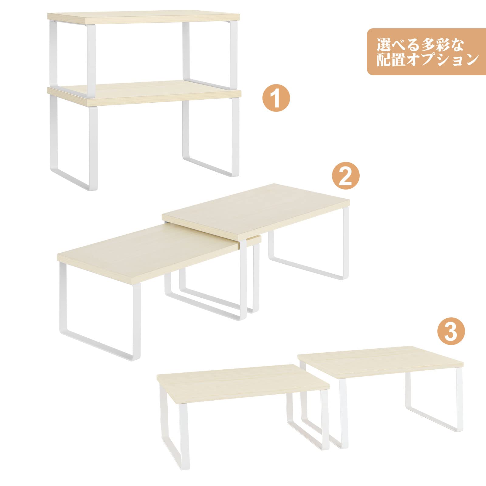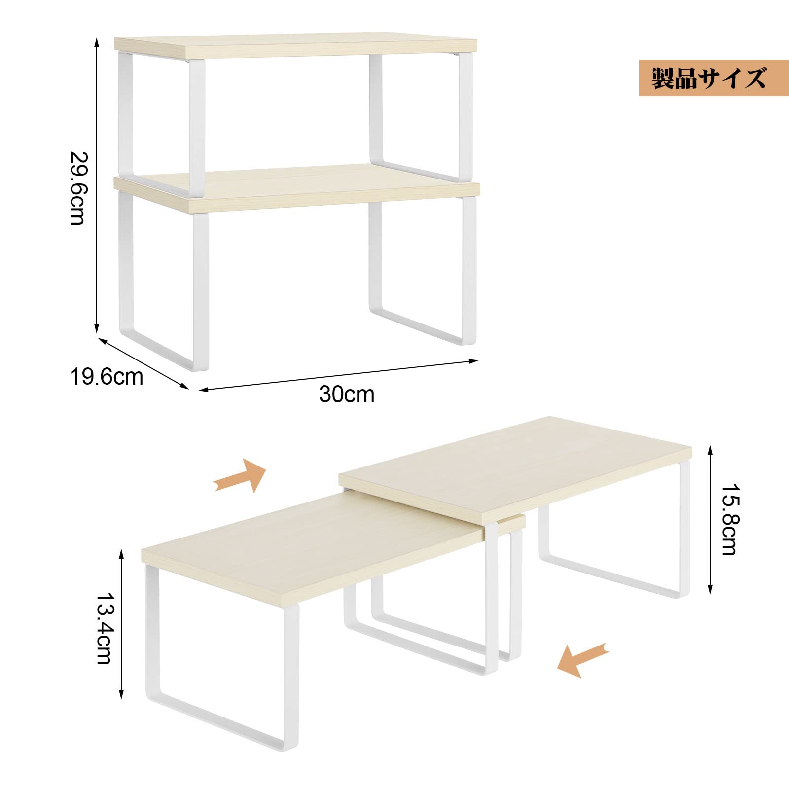 積み重ねラック 4個セット キッチンラック 机上ラック 調味料ラック 仕分け棚 拡張可能 デスク隙間収納棚 スパイスラック 調味料棚 収納ボックス下ラック コの字ラック 食器棚 プラスラック 幅30-50cm