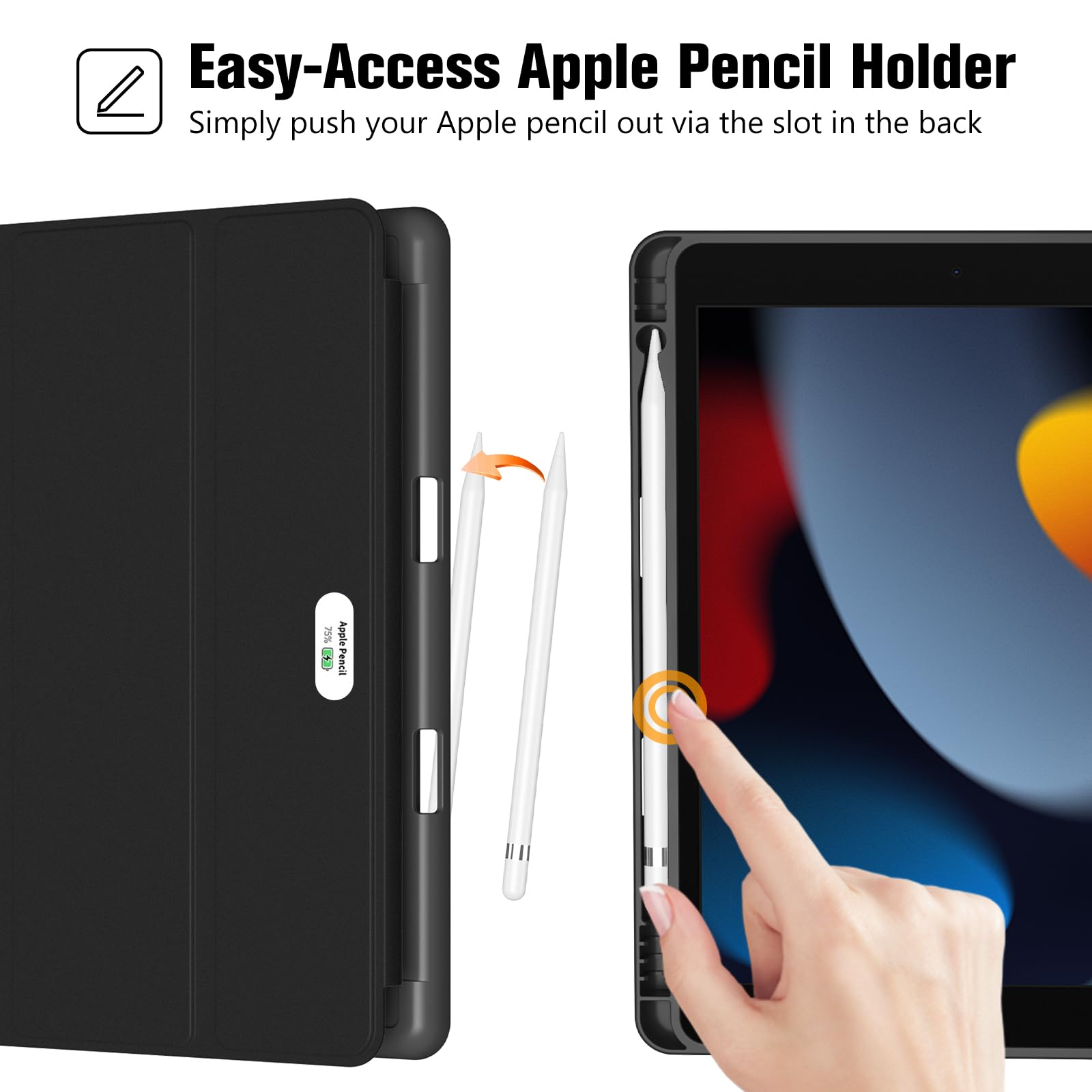 ProCase スマートケース iPad 9/8/7世代対応(2021 2020 2019) 10.2インチ ソフトカバー 軽量 オートスリープ/ウェイクに対応 アップルペンシル収納 耐衝撃 - ブラック