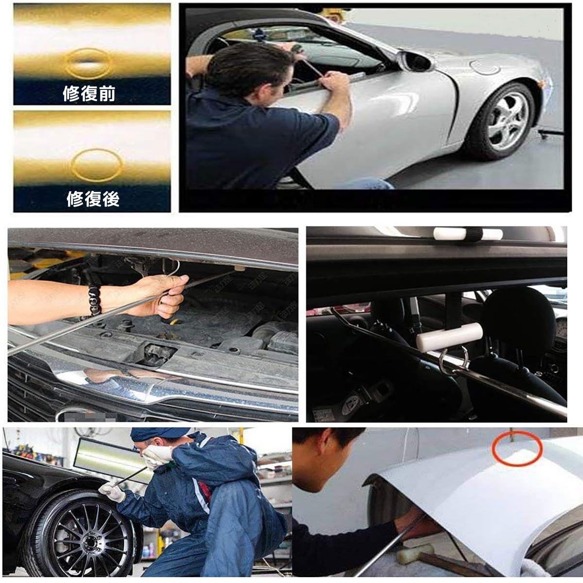 WHDZ デントリペアツール 車の凹修復 押し出す作業 板金道具セット 車の凹み直し 車修復工具 車ドアウェッジ 自動修復ツール ゴム槌 除去 へこみ 修理 修復ツール ロッドフック 修復錐