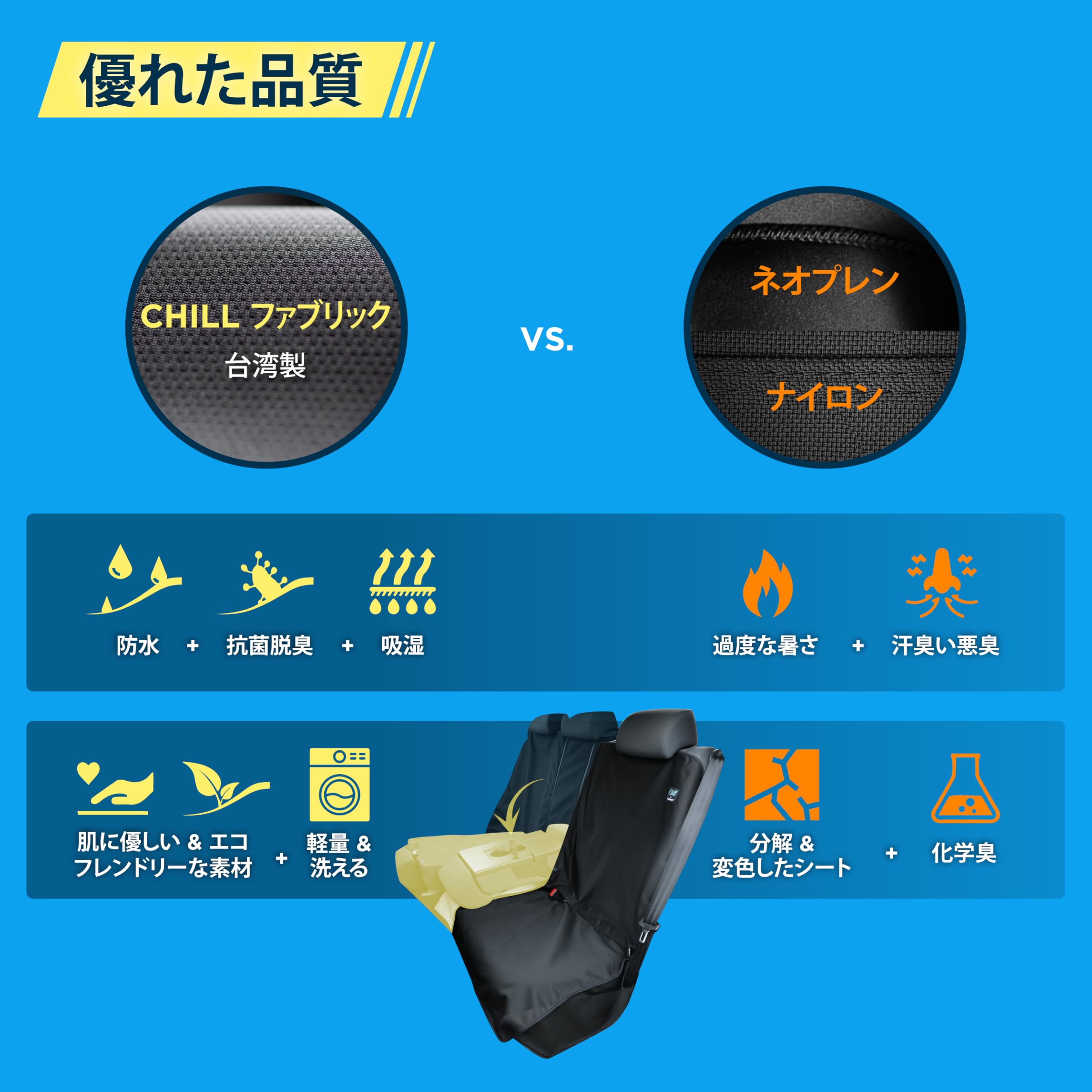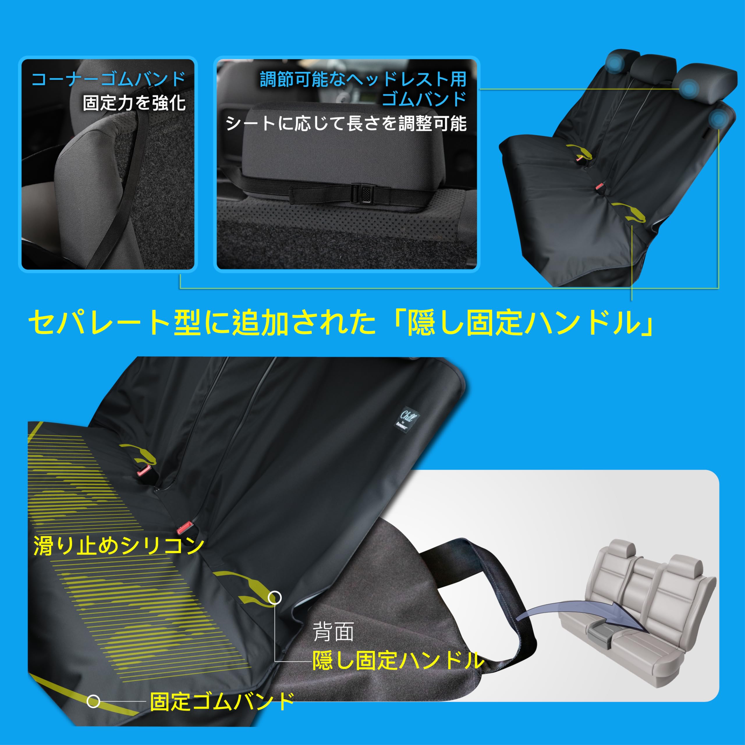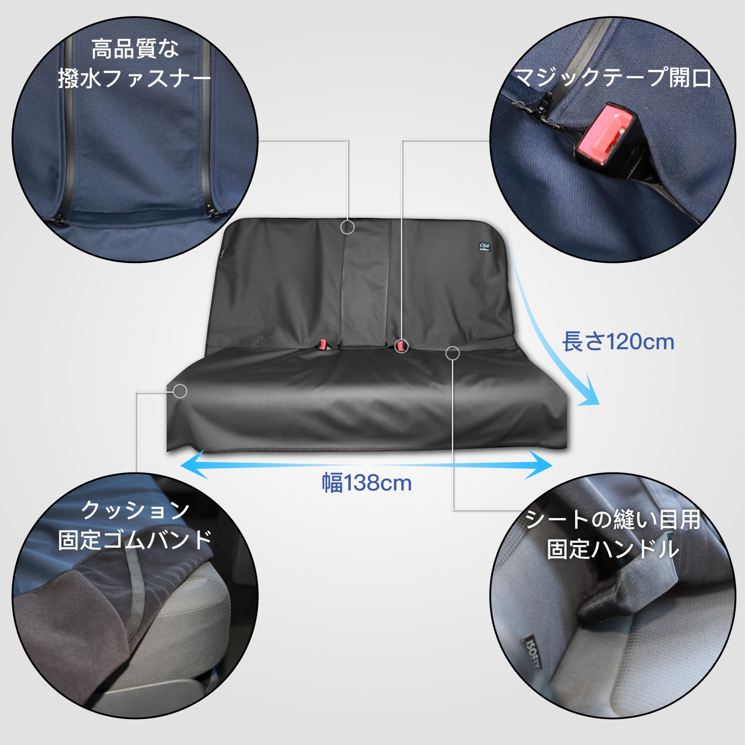 AUTHENTICS Chill 軽/普通車 シートカバー 防水 抗菌 消臭 かけるだけ 簡単 汎用 洗える 快適なドライブを実現 後部座席 リア ISOFIXチャイルドシート対応