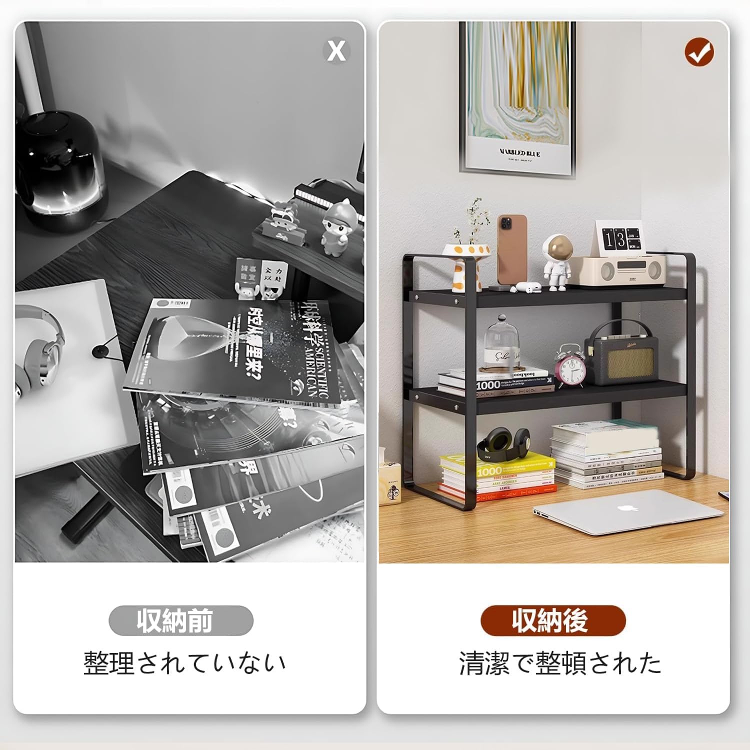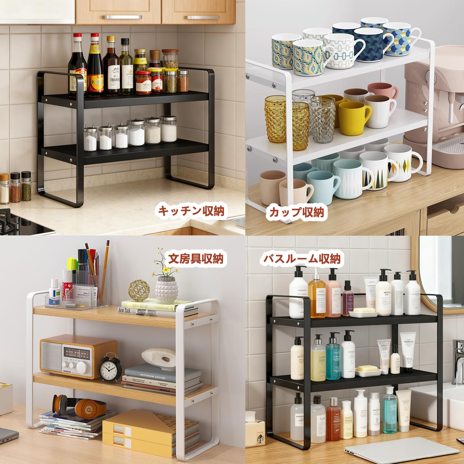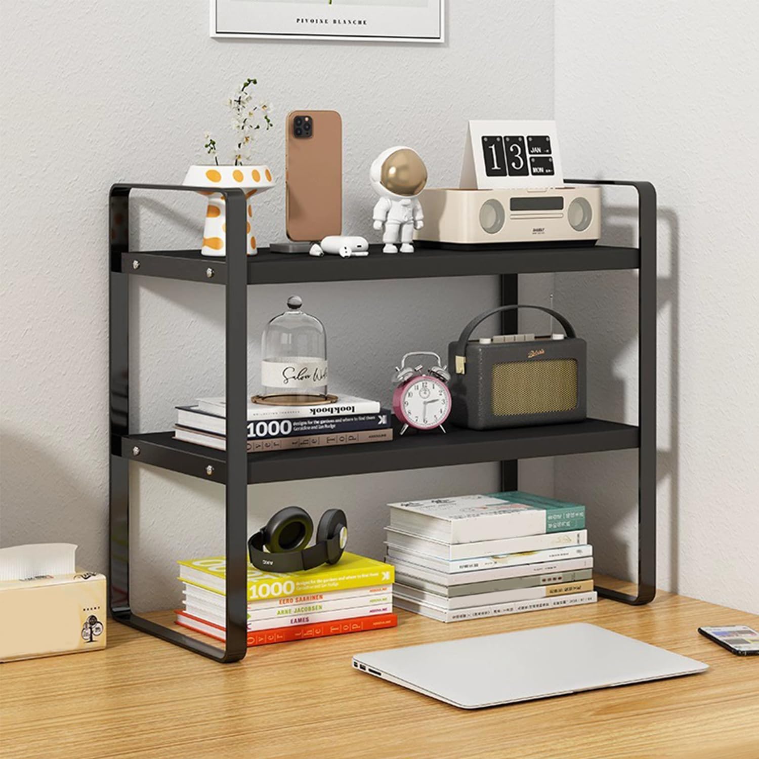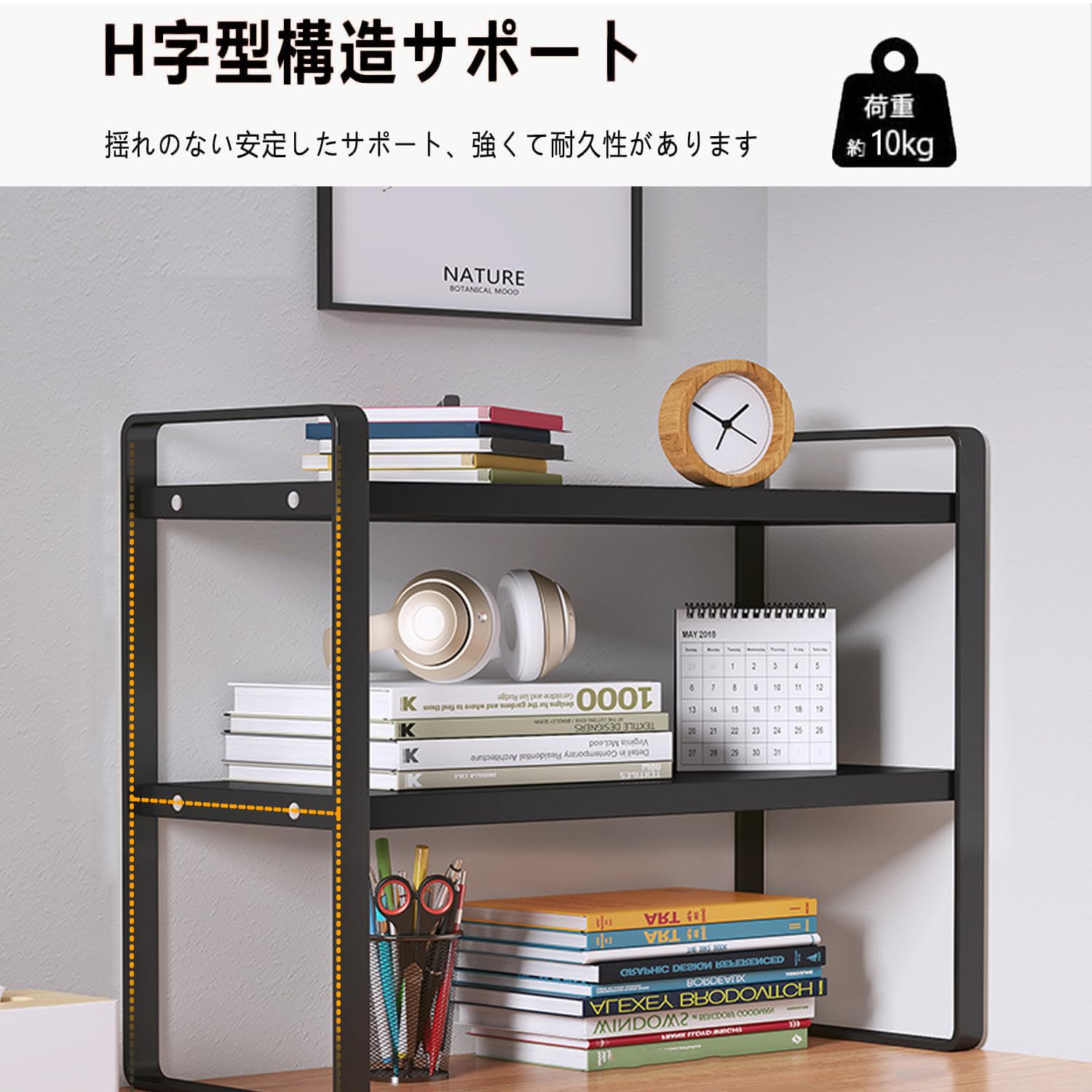 多機能デスク上収納ラック - 簡単組み立て、省スペース効果的な整理整頓 (黒, 95cm)