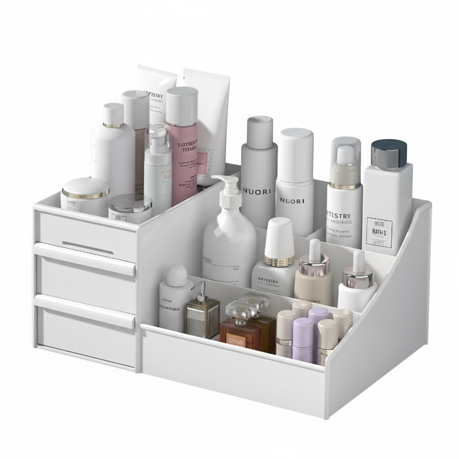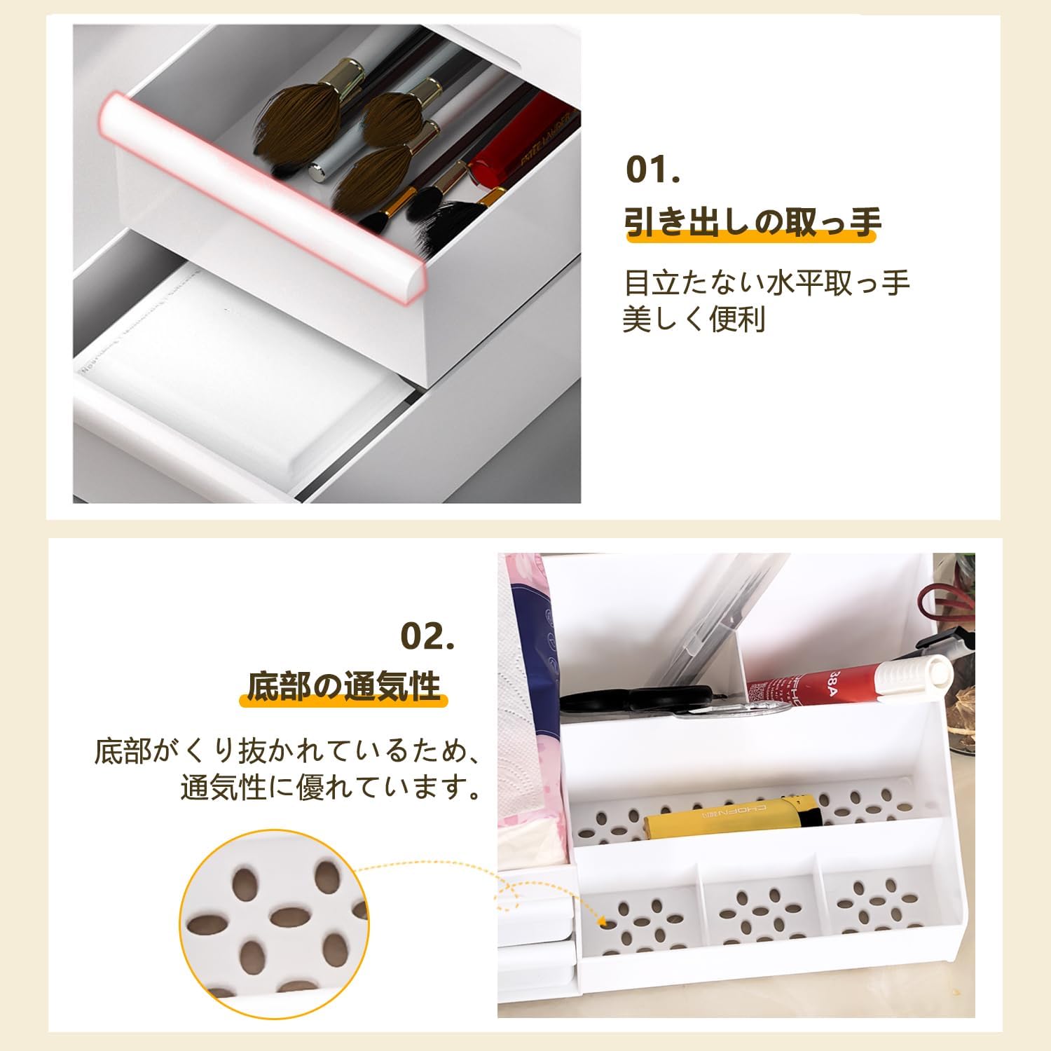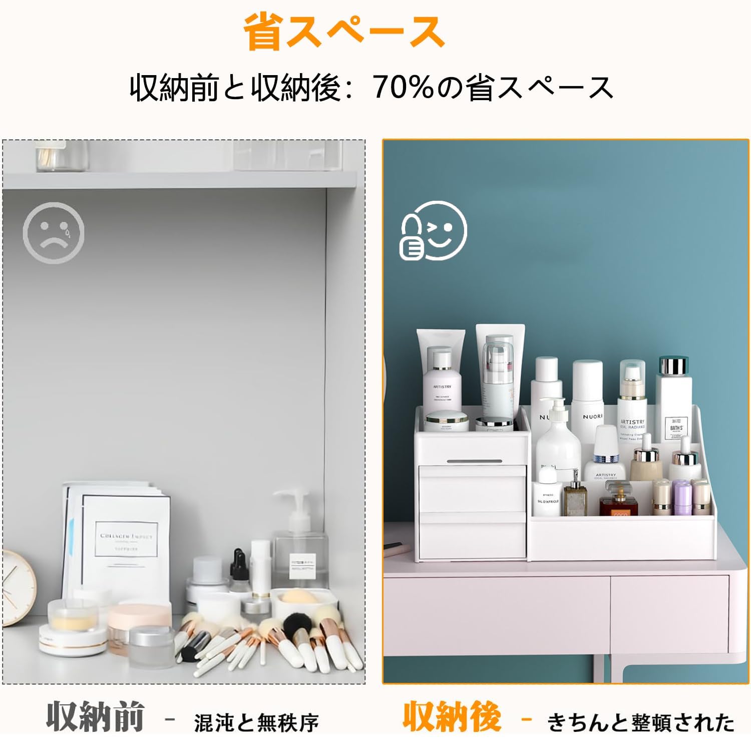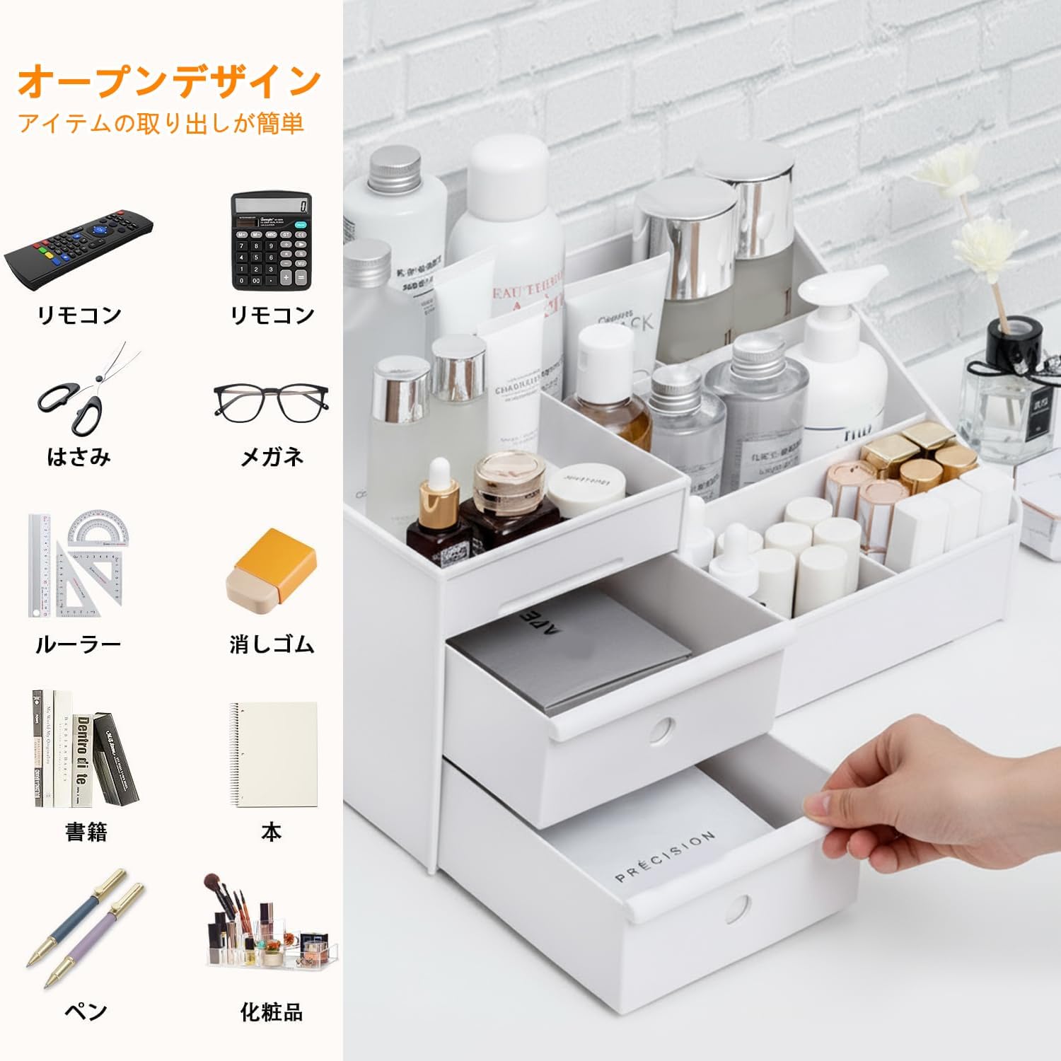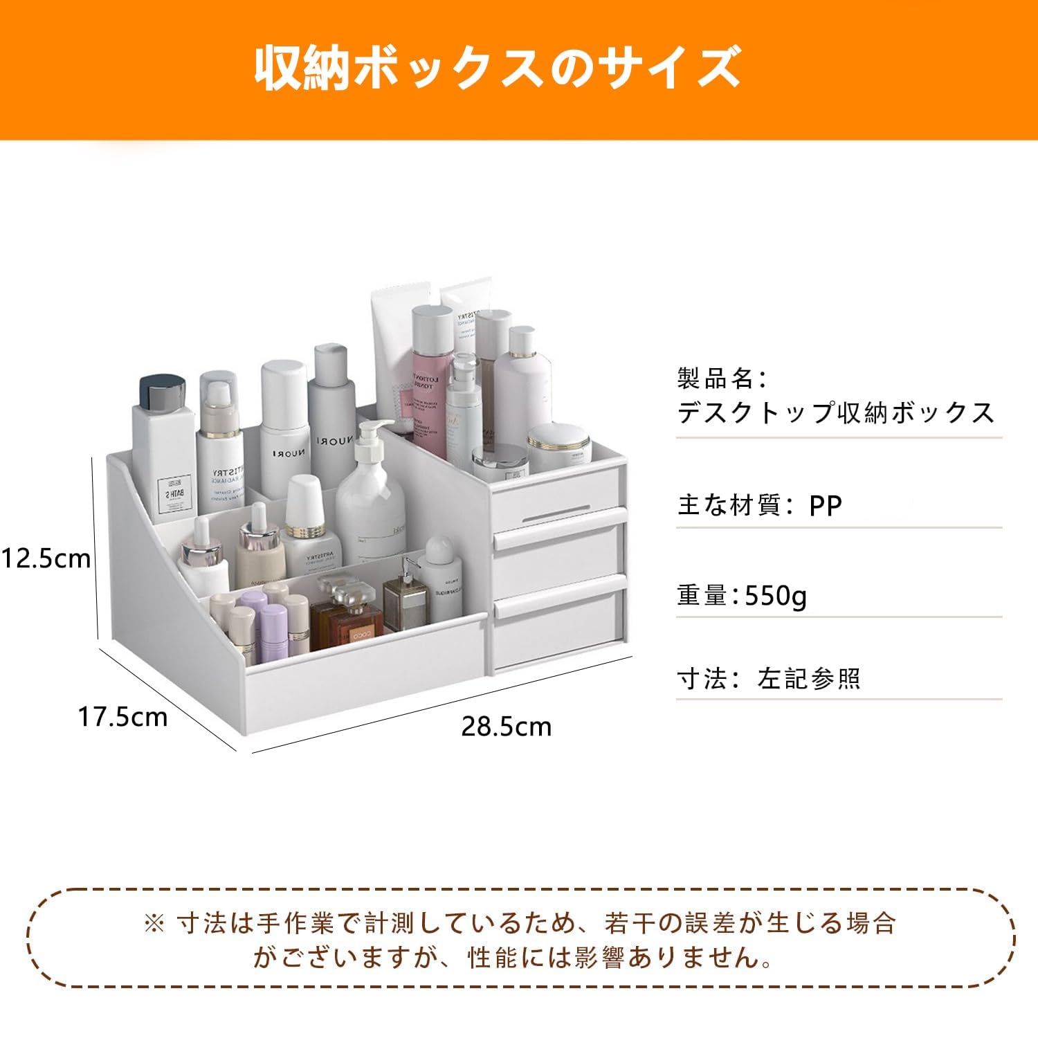 Vinnatsu化粧品収納ボックス 化粧品収納ラック ペン立て 卓上収納 引き出し 仕切り 収納ケース小物入れ おしゃれ ジュエリーボックス 卓上 デスクオーガナイザー 防塵防水強い耐久性(ホワイト)