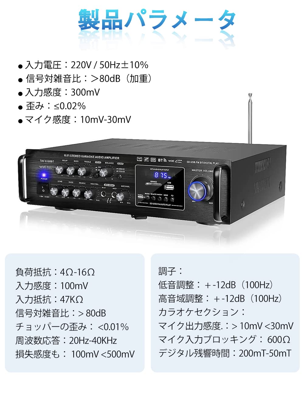 Bluetoothパワーアンプ小型 デジタルオーディオスピーカー FM/リモート/USB / MP3付き