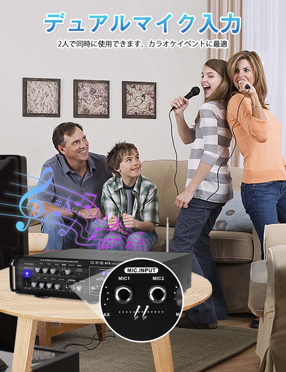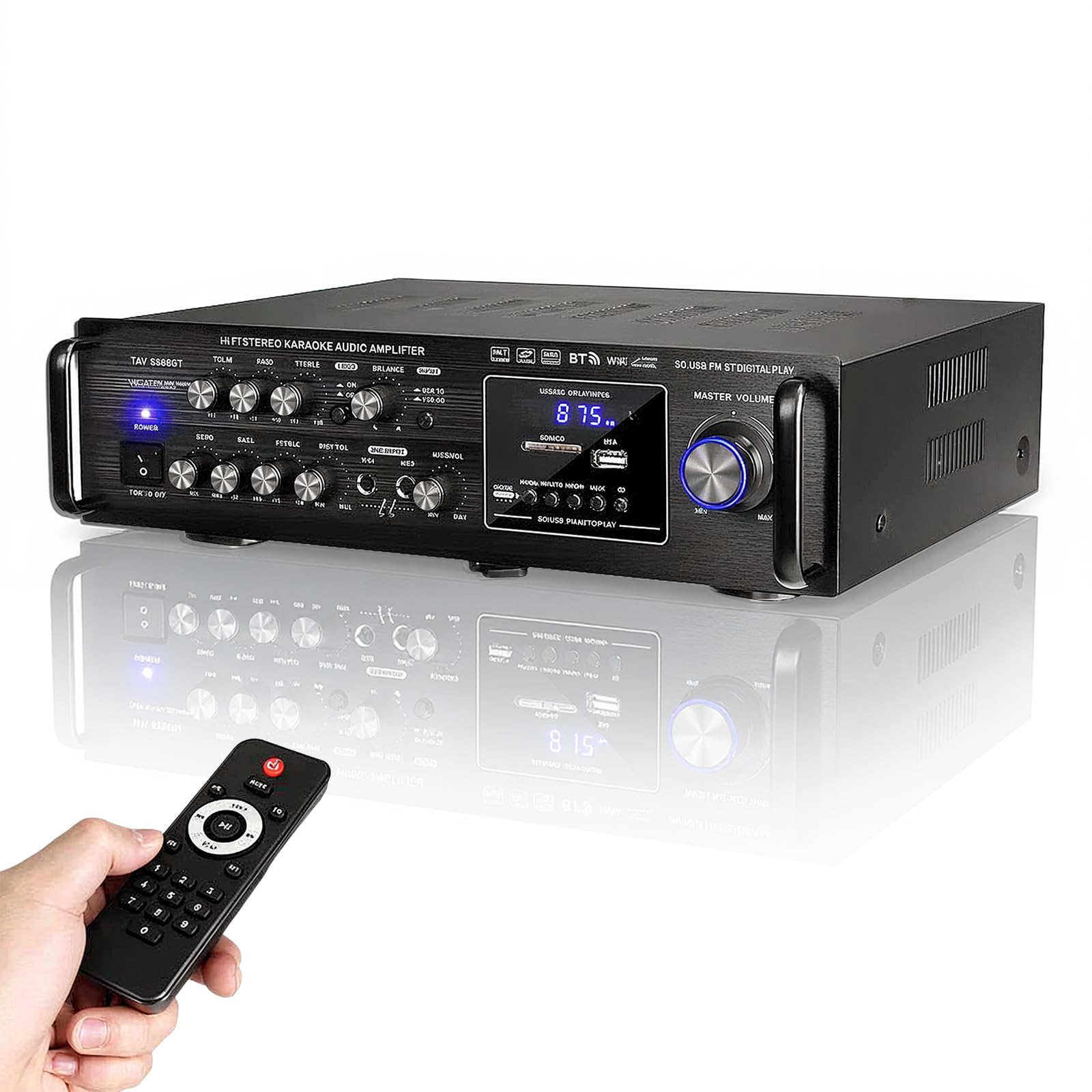 Yiteng Bluetoothオーディオサウンドアンプ HiFiパワーホームアンプ カラオケ110V EQ USB SD 4マイクカーアンプ リモン付き 車載 家庭用カーアンプ パーティー用 忘年会 新年会 結婚式 (B)