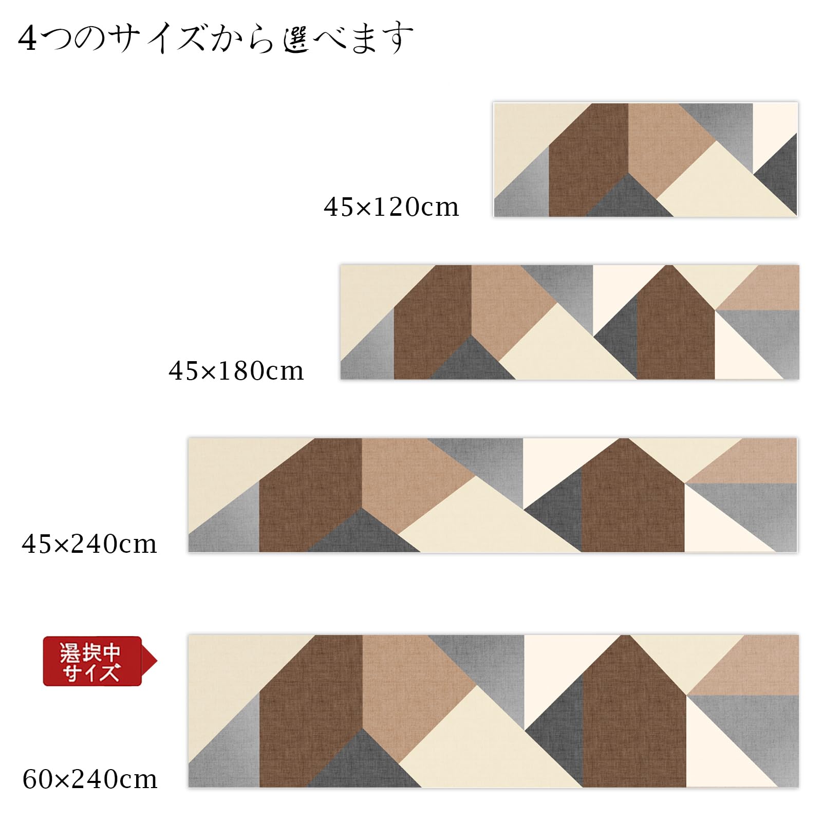 Koniroom キッチンマット 60×240cm 幾何学ピース柄 撥水 防汚 防炎 抗菌 滑り止め クッション性 PVC素材 厚さ10mm おしゃれ 北欧風 台所マット