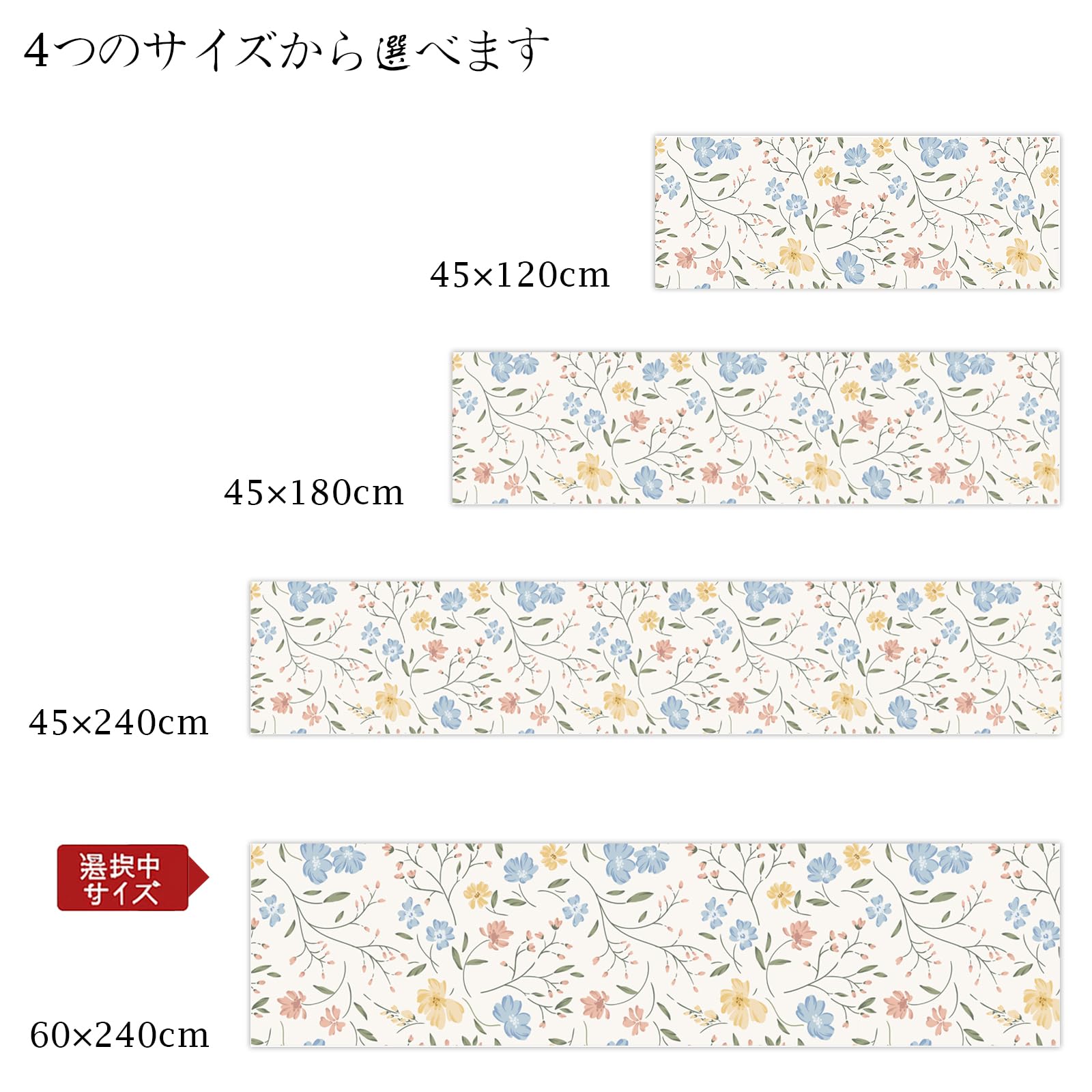 Koniroom キッチンマット 花柄 小花デザイン 田園風 北欧 おしゃれ 拭ける 防水 防汚 防炎 滑り止め PVC素材 台所マット 60×240cm 厚さ10mm ナチュラル フロアマット