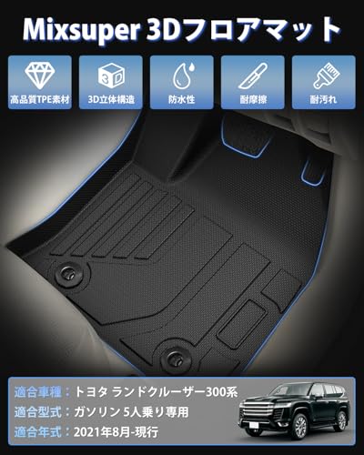 Mixsuper ランドクルーザー300系 フロアマット 防水マット 5人乗り専用 ランクル300 3D 立体カーマット 2021年8月-現行 LC300 カスタムパーツ 車種専用設計 TPE素材 防水 耐摩耗性 簡単取付 荷物収納