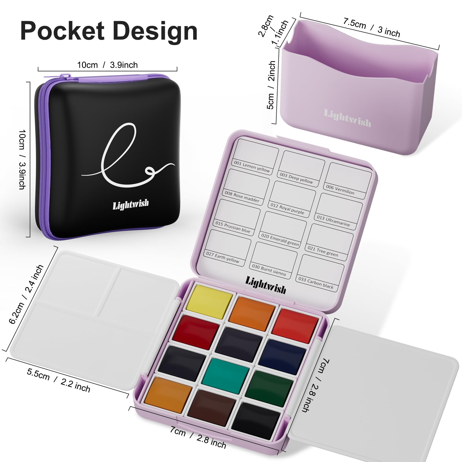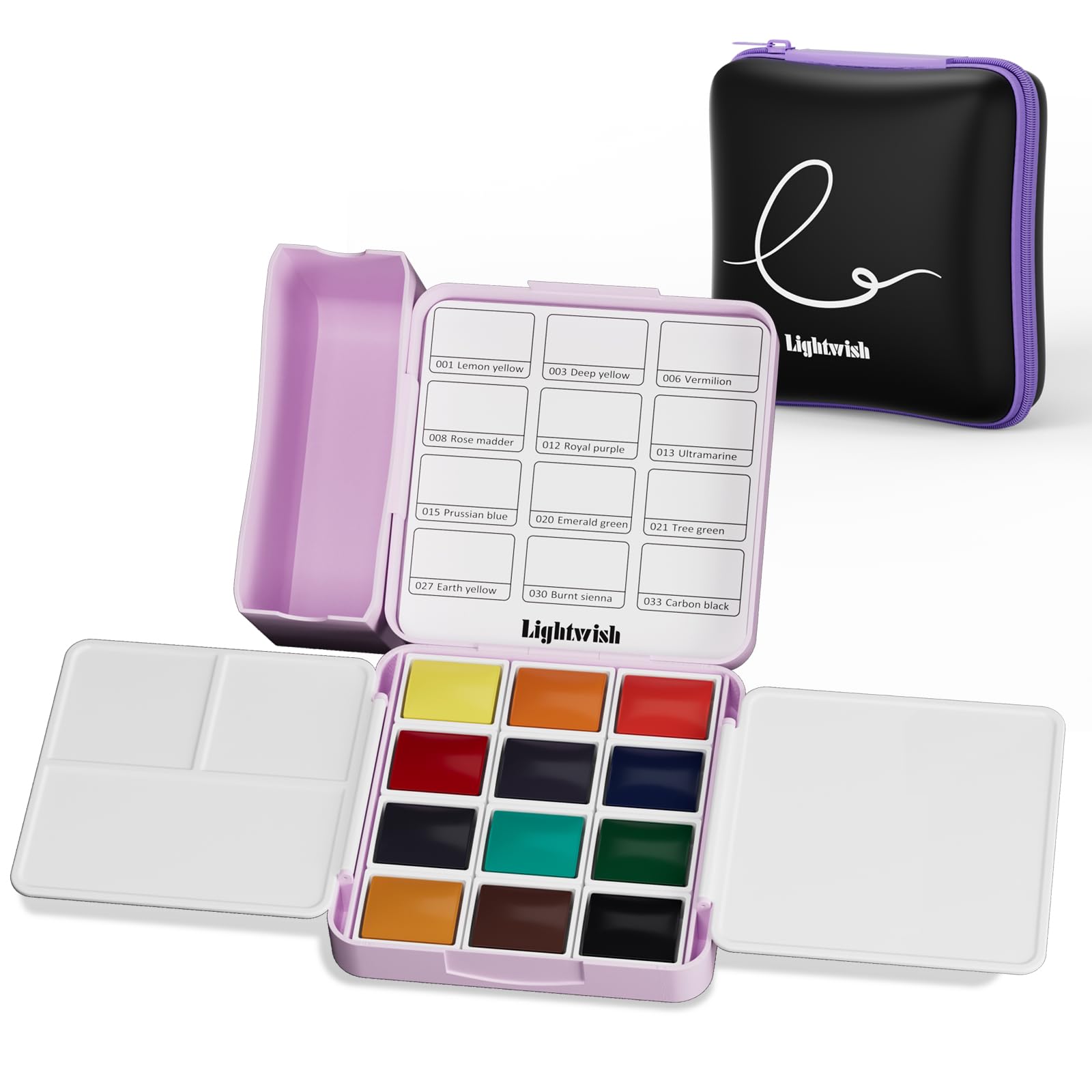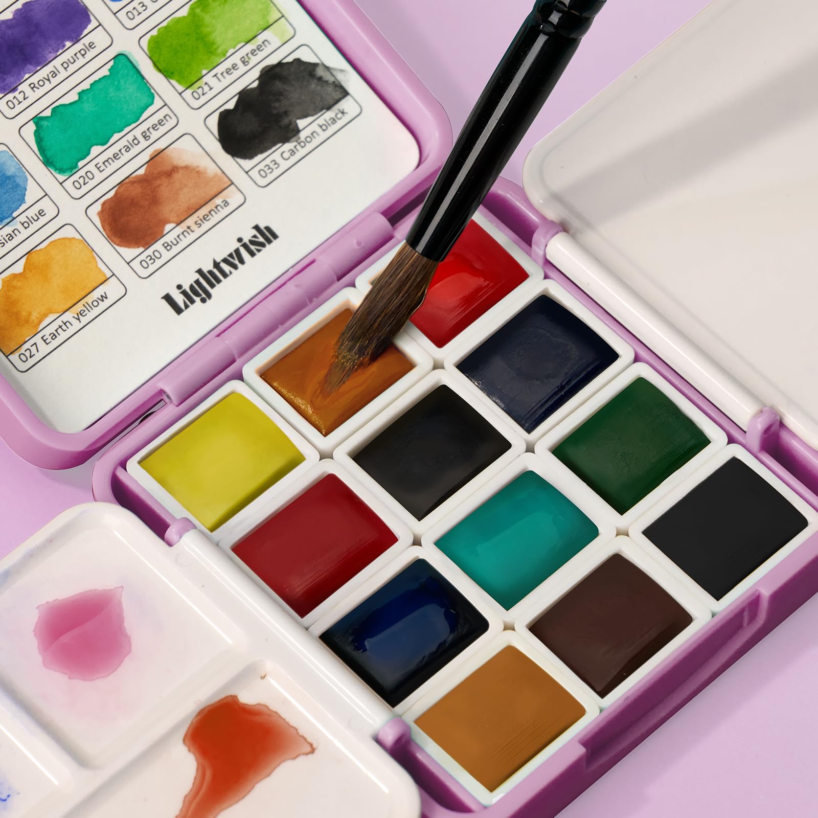 LIGHTWISH ポケット水彩セット 12色 旅行用 コンパクトケース 調色パレット・水入れ付き 大人の趣味 初心者向け