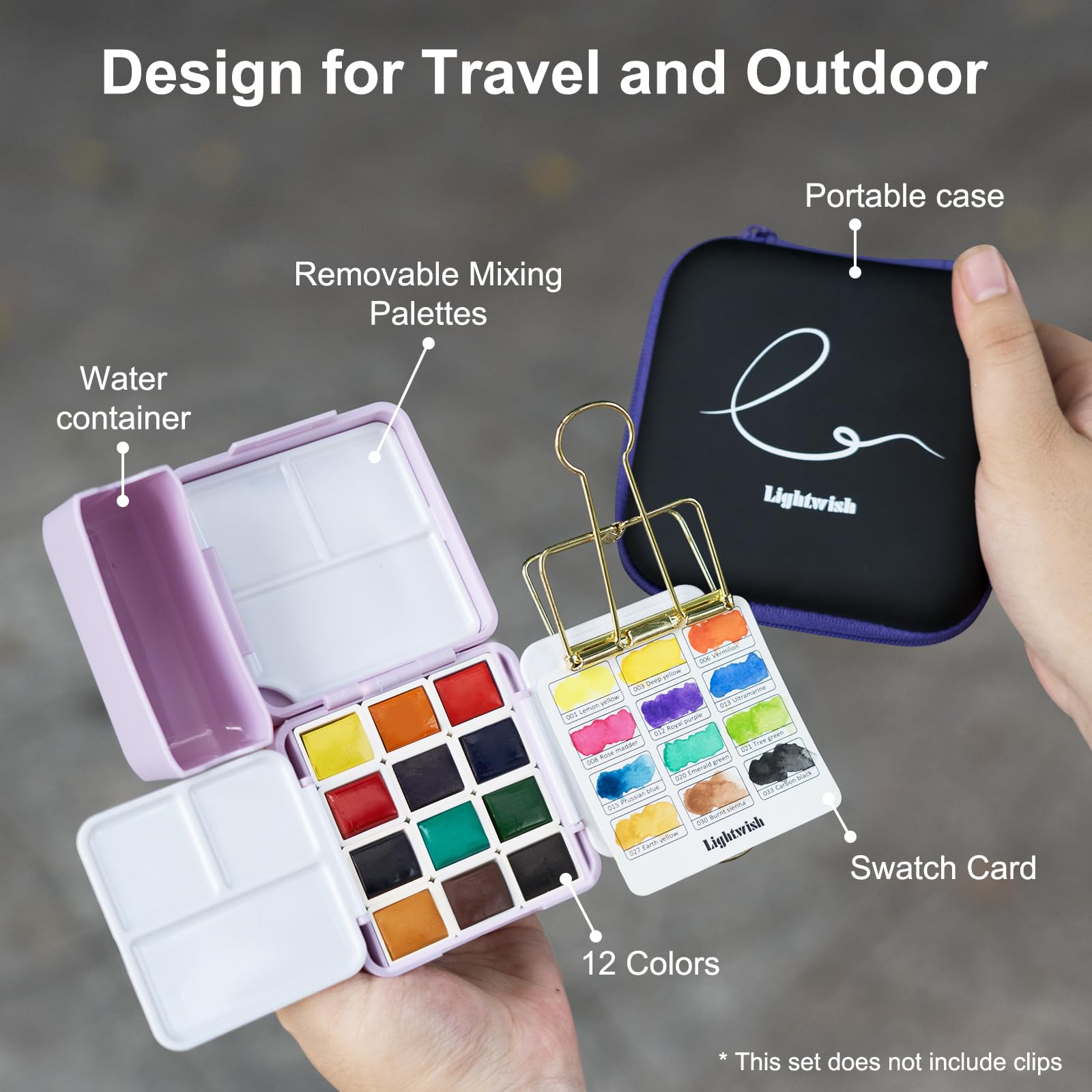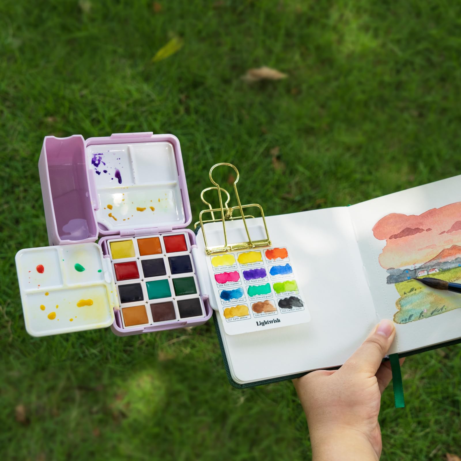 LIGHTWISH ポケット水彩セット 12色 旅行用 コンパクトケース付き 大人の趣味 初心者向け 水彩画用具一式
