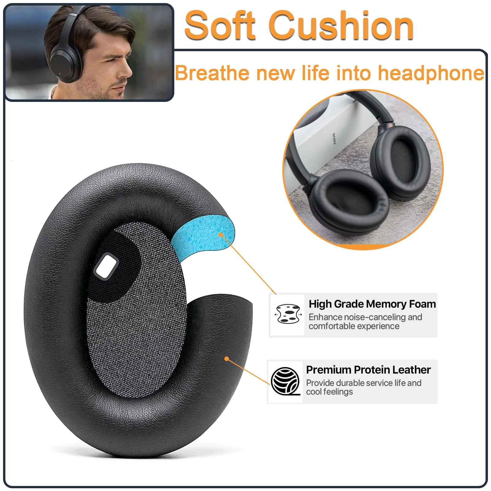 イヤーパッド クッション 交換用 WH-1000XM4 オーバーイヤーヘッドホン WH1000XM4 イヤーパッド 柔らかいプロテインレザー ノイズアイソレーションメモリーフォーム ブラック