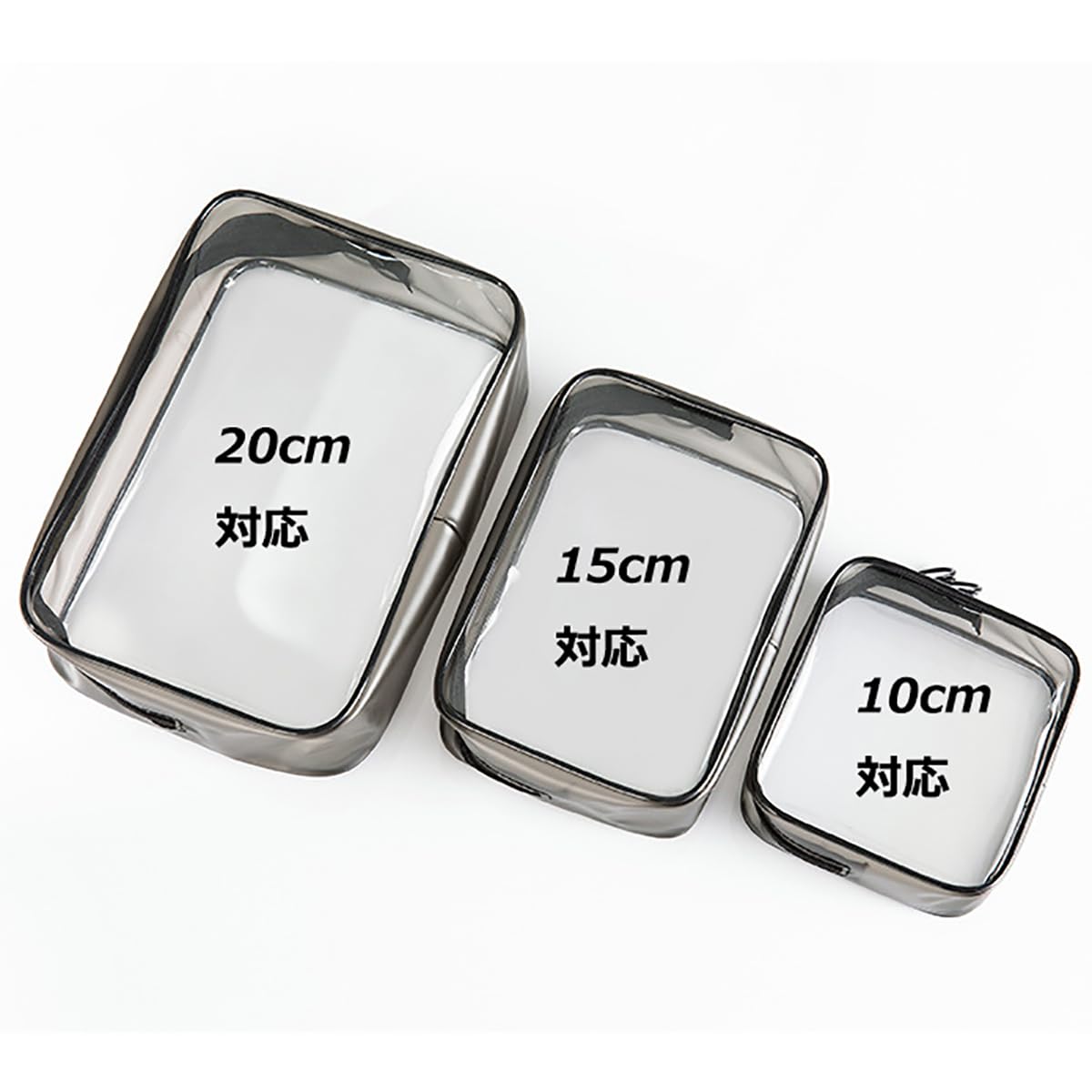 痛バッグ ぬいポーチ 10cm/15cm/20cmサイズ対応 推し活ぬいポーチ 人形の保管場所 全透明 PVCケース 防水・防塵 ジッパー式 ポンポンボール&キーホルダー付 (20cm対応-黒)