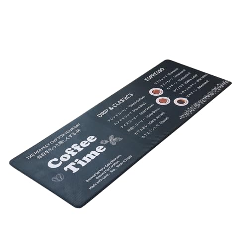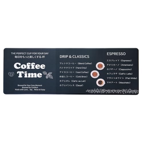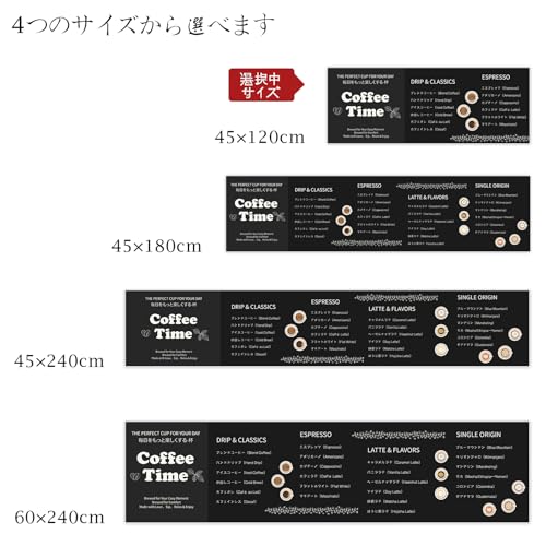 Koniroom キッチンマット 45×120cm カフェメニュー柄 ブラック 撥水 防汚 防炎 抗菌 滑り止め PVC素材 クッション性あり 厚さ10mm 拭き取り簡単 おしゃれ 台所マット