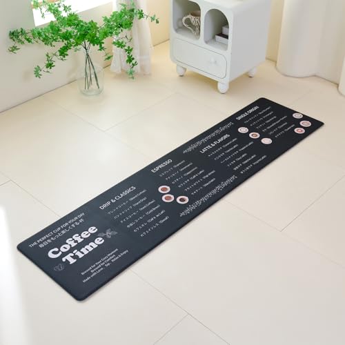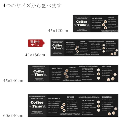 Koniroom キッチンマット 45×180cm カフェメニュー柄 ブラック 撥水 防汚 防炎 抗菌 滑り止め PVC素材 クッション性あり 厚さ10mm 拭き取り簡単 おしゃれ 台所マット