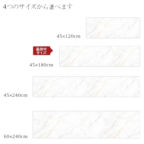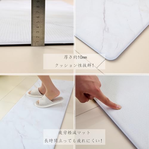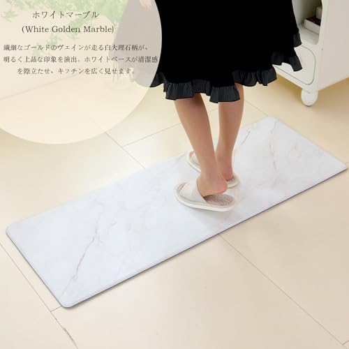 Koniroom キッチンマット 45×180cm 大理石柄 ホワイトゴールド 撥水 防汚 防炎 抗菌 滑り止め PVC素材 クッション性あり 厚さ10mm 拭き取り簡単 モダン 台所マット