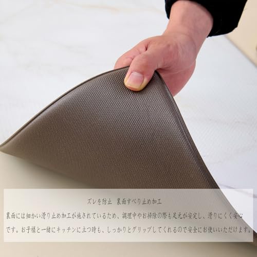 Joolxxo キッチンマット 拭ける 洗濯いらず 低反発クッション 厚さ10mm ポリ塩化ビニール ずれない 台所 マット 撥水 防汚 PVC (ブラウン, 45 x 180cm)