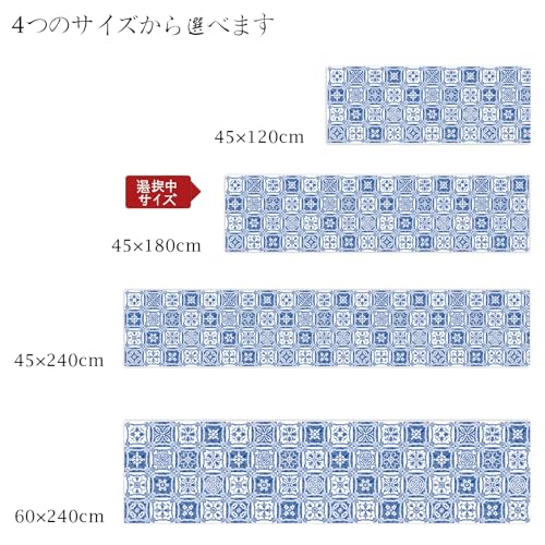 Koniroom キッチンマット 45×180cm タイル柄 ブルー アズレージョ 撥水 防汚 防炎 抗菌 滑り止め PVC素材 クッション性あり 厚さ10mm 拭き取り簡単 台所マット