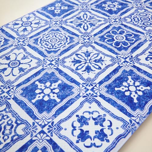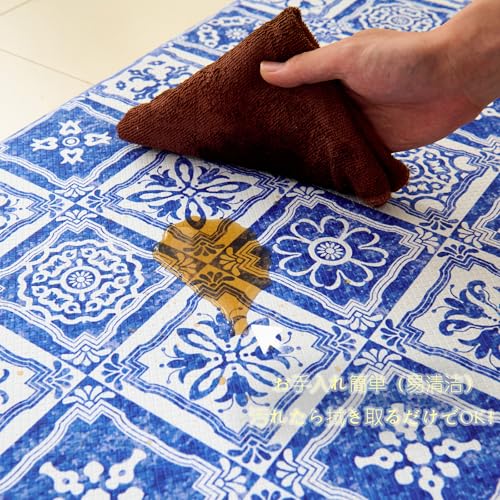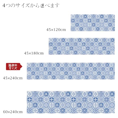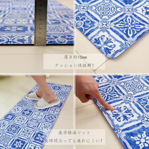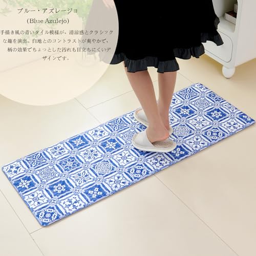 Koniroom キッチンマット 45×240cm タイル柄 ブルー アズレージョ 撥水 防汚 防炎 抗菌 滑り止め PVC素材 クッション性あり 厚さ10mm 拭き取り簡単 台所マット