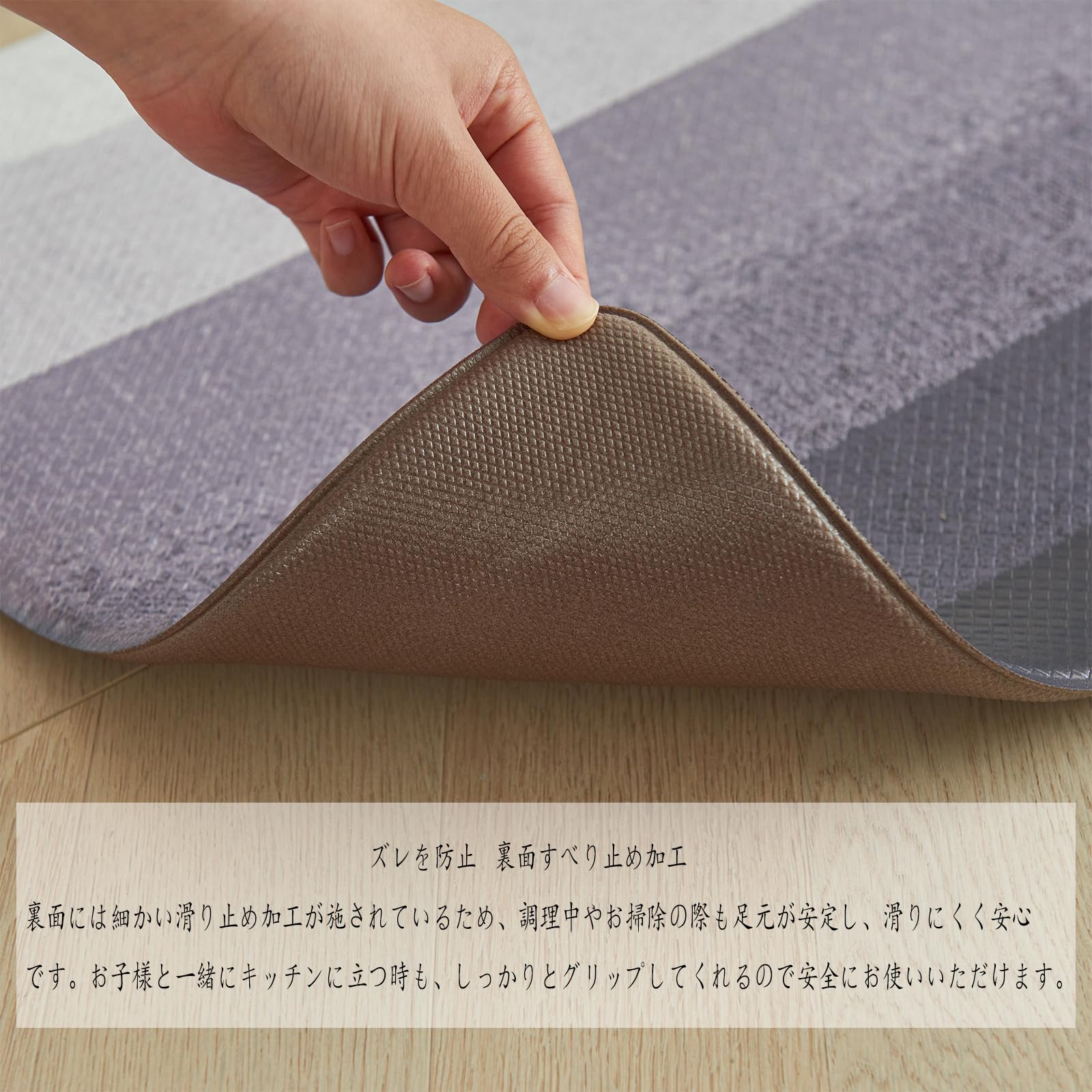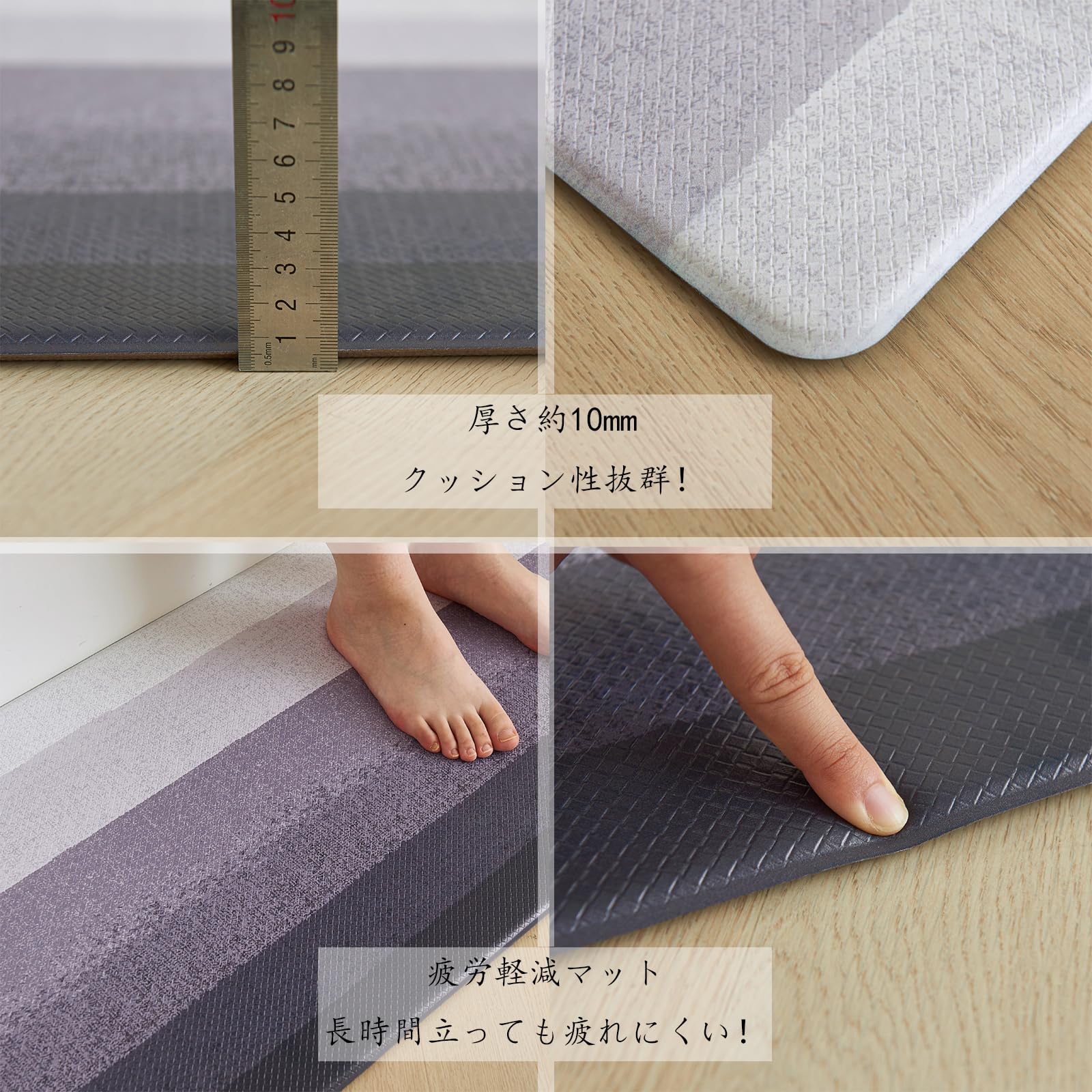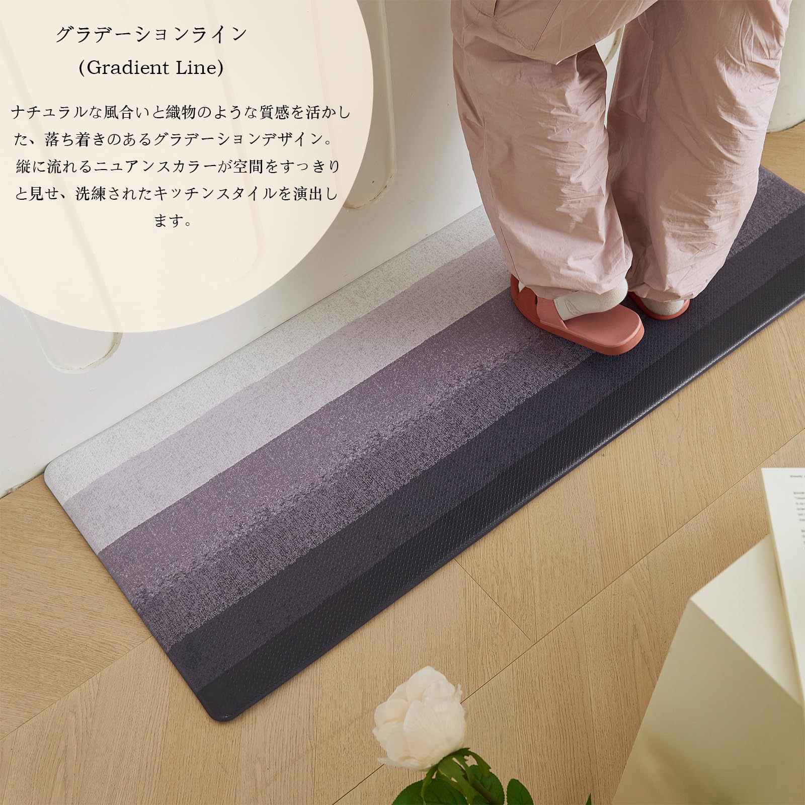 Koniroom キッチンマット 北欧 おしゃれ 45×180cm 撥水 防汚 防炎 滑り止め グレー グラデーション テキスタイル風 台所マット 抗菌 防臭 厚さ10mm