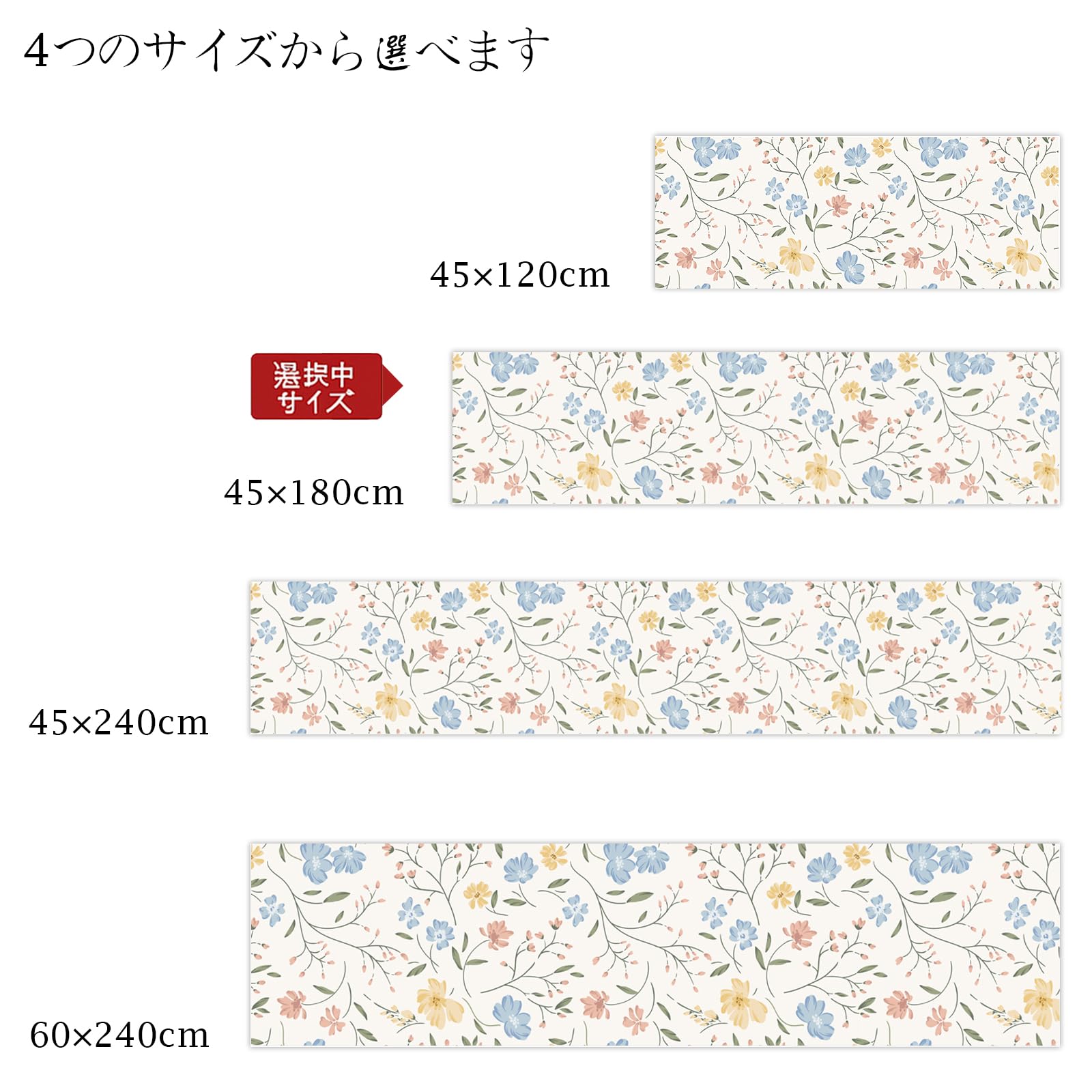 Koniroom キッチンマット 花柄 小花デザイン 田園風 北欧 おしゃれ 拭ける 防水 防汚 防炎 滑り止め PVC素材 台所マット 45×180cm 厚さ10mm ナチュラル フロアマット