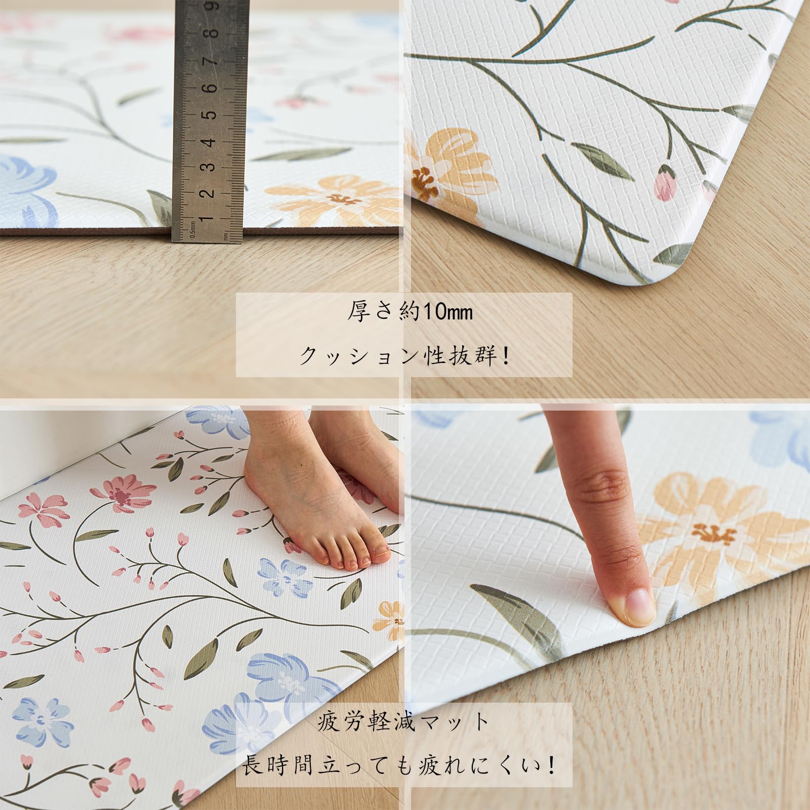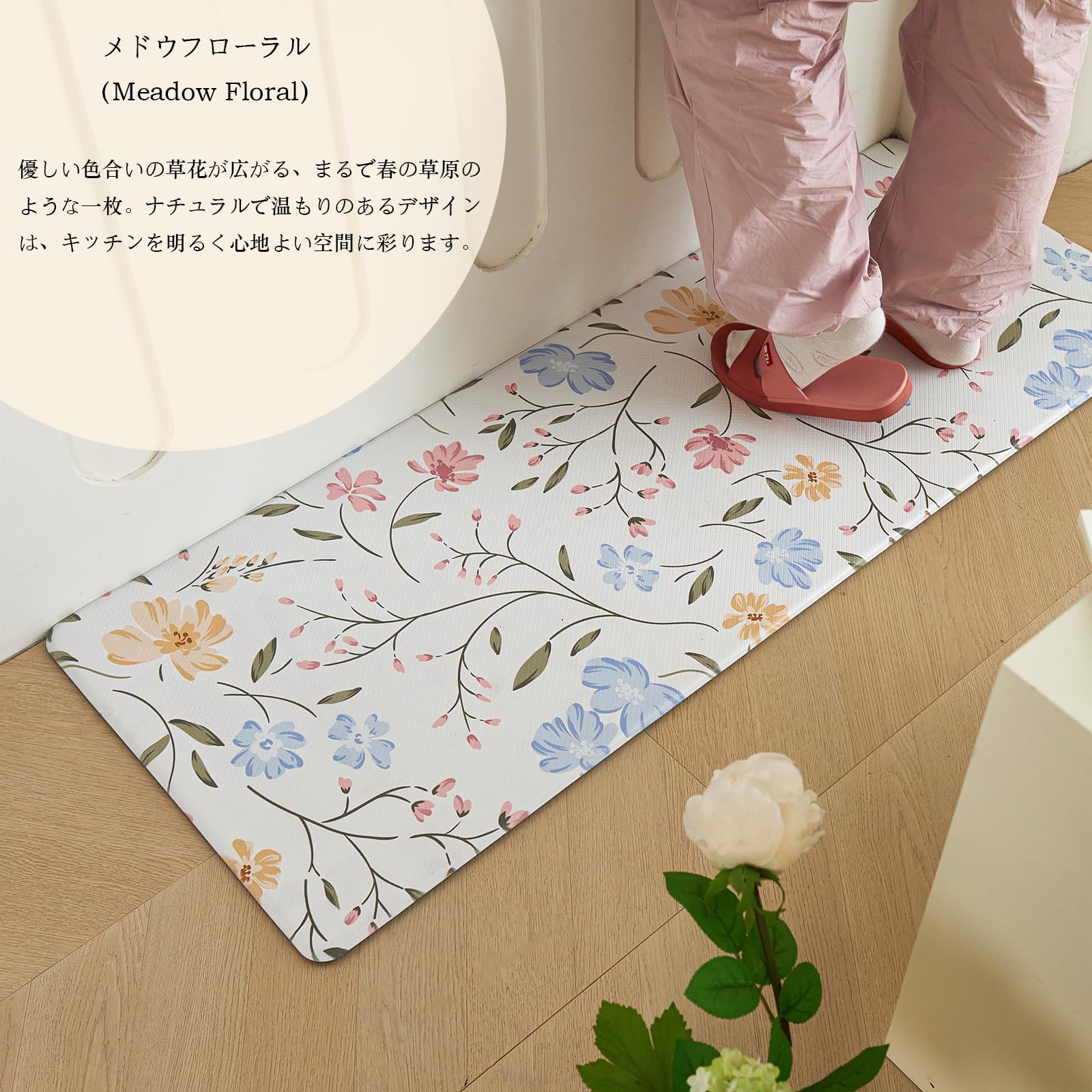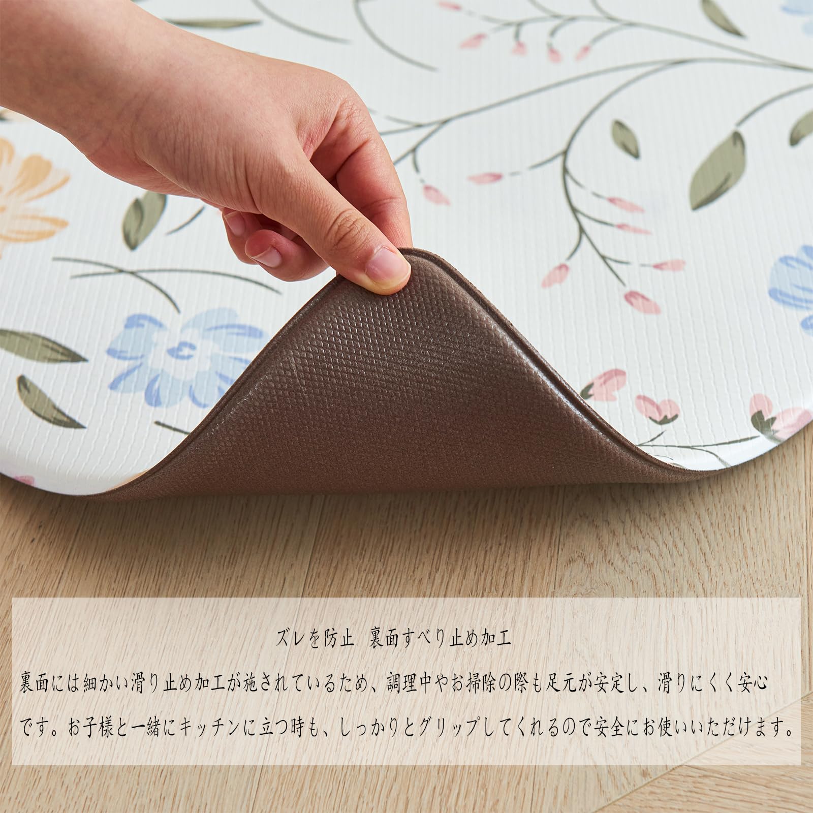 Koniroom キッチンマット 花柄 小花デザイン 田園風 北欧 おしゃれ 拭ける 防水 防汚 防炎 滑り止め PVC素材 台所マット 45×120cm 厚さ10mm ナチュラル フロアマット