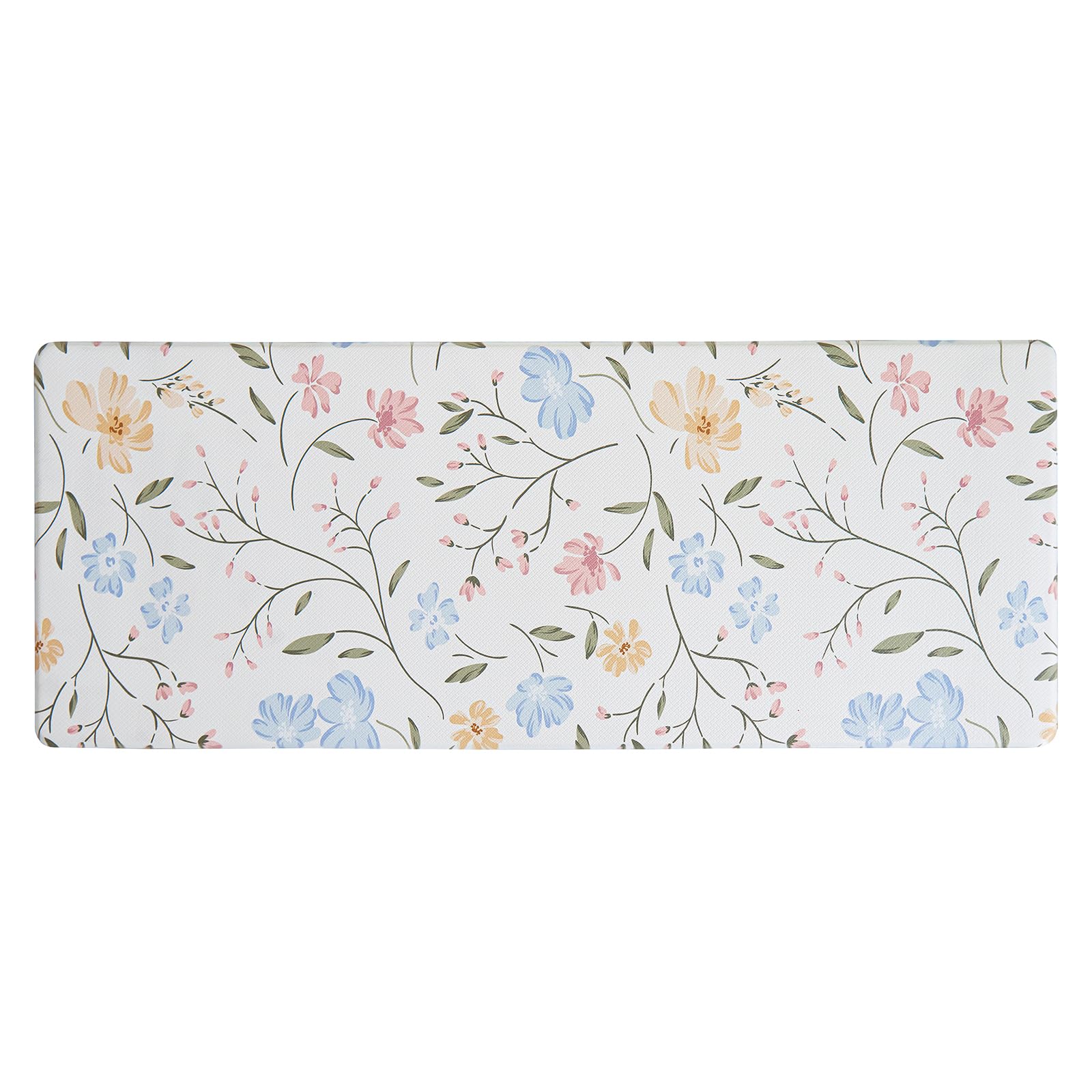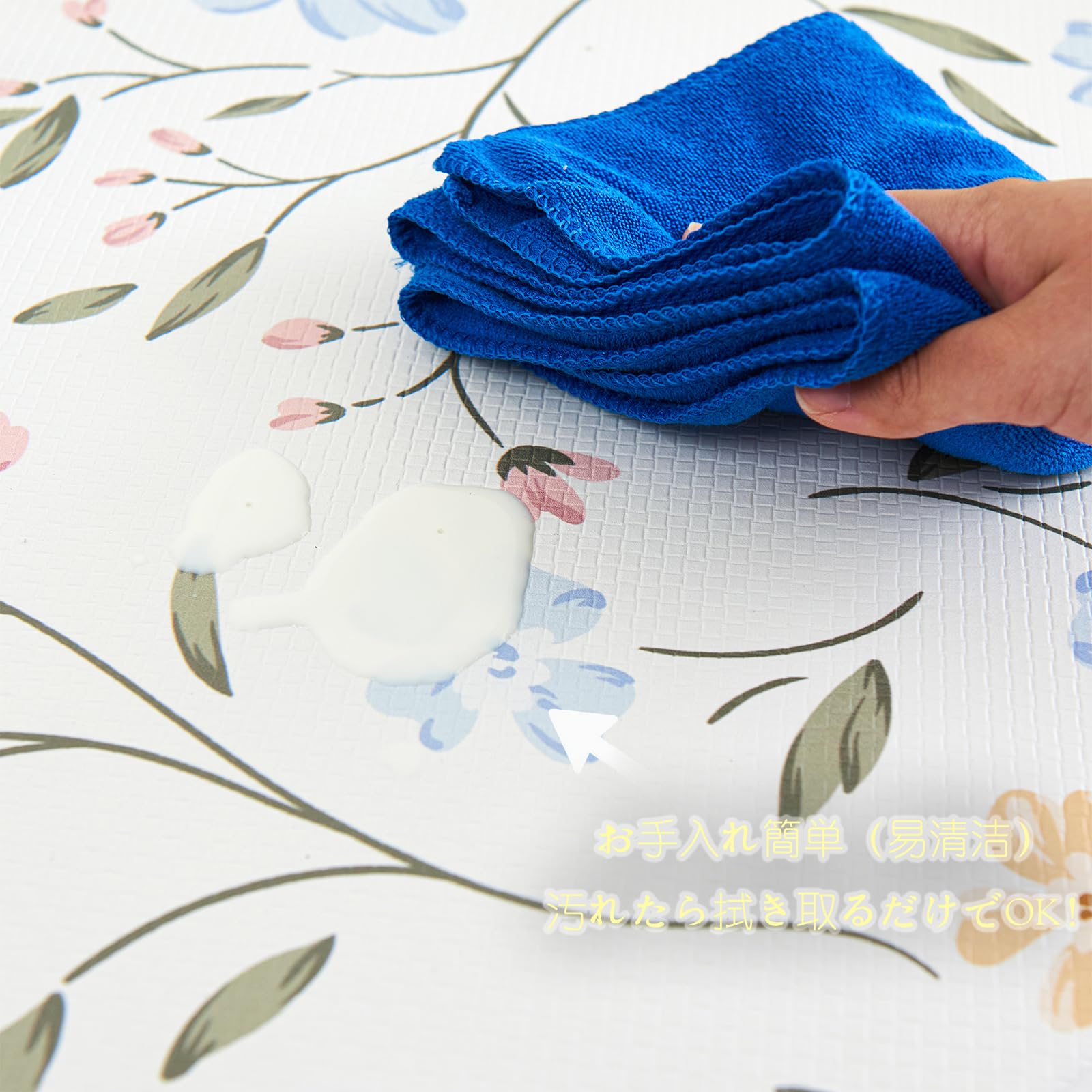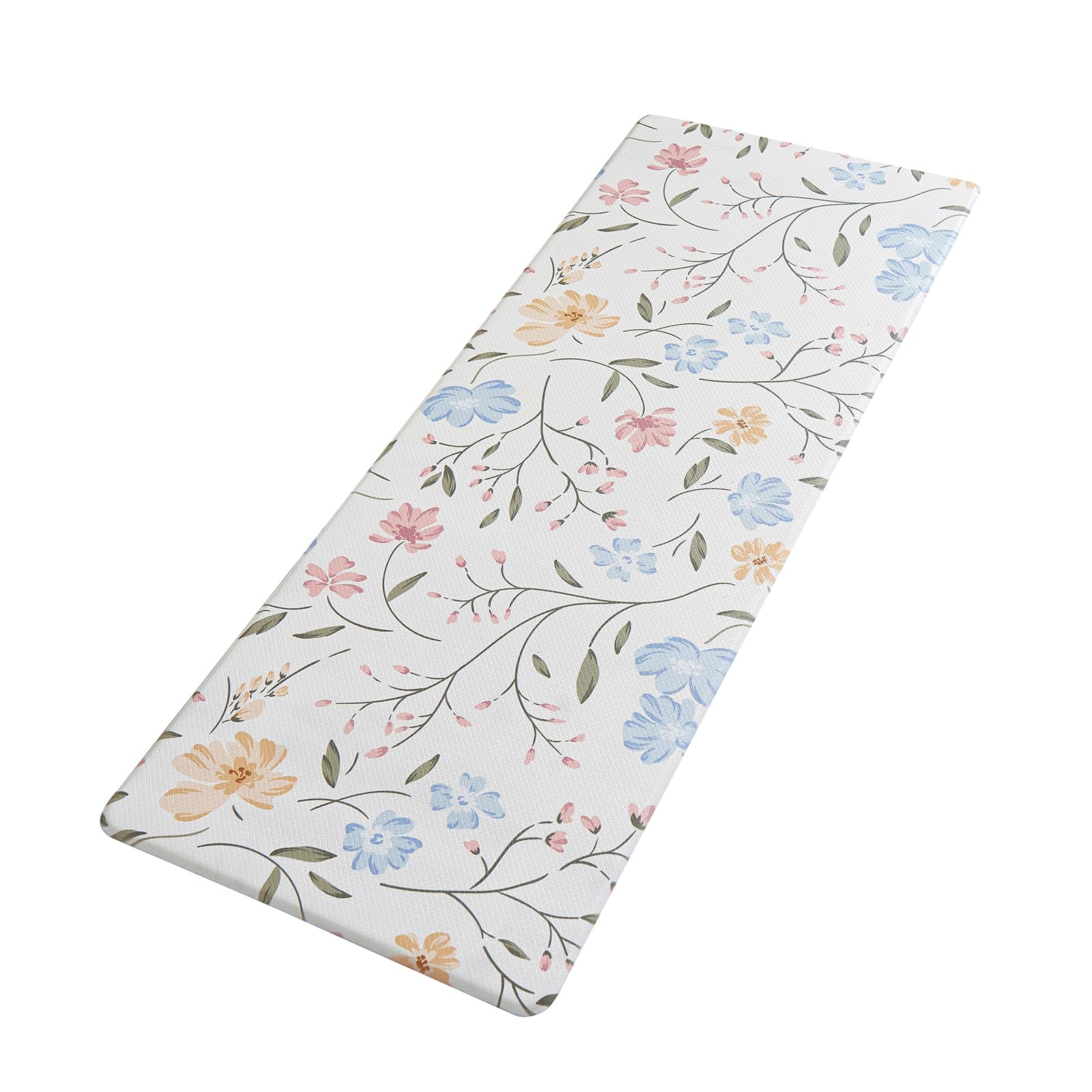 Koniroom キッチンマット 花柄 小花デザイン 田園風 北欧 おしゃれ 拭ける 防水 防汚 防炎 滑り止め PVC素材 台所マット 45×120cm 厚さ10mm ナチュラル フロアマット