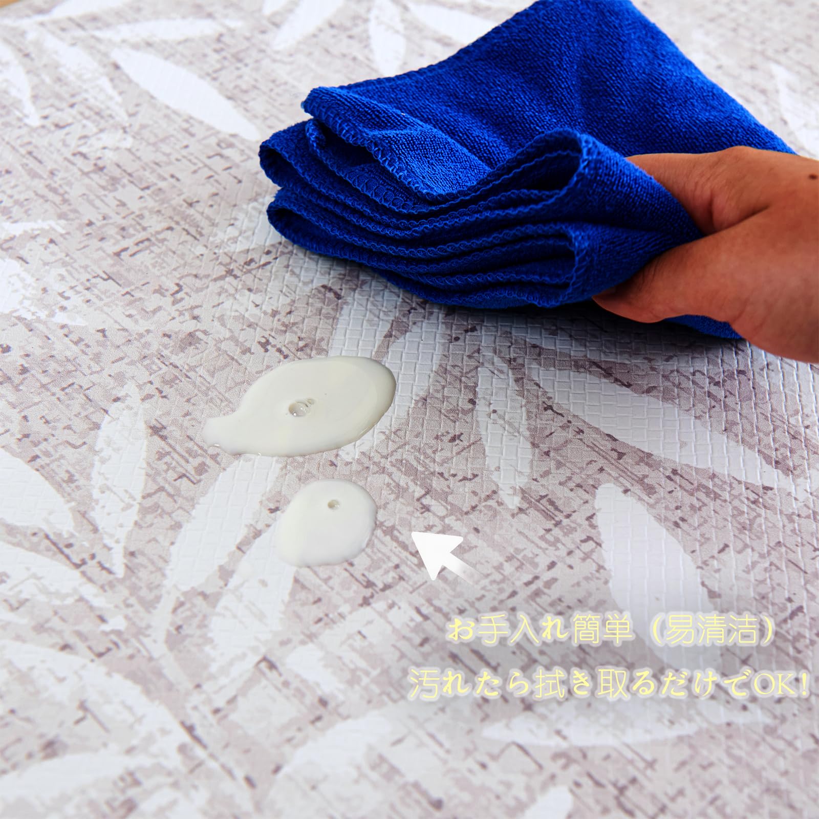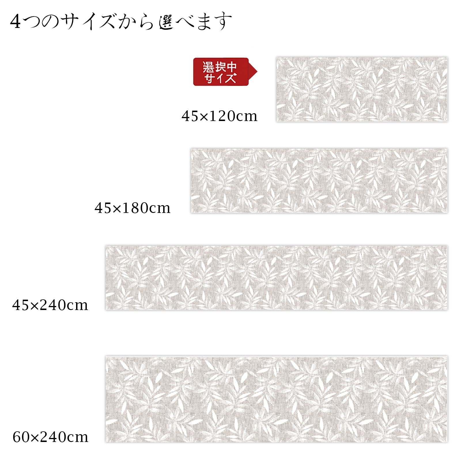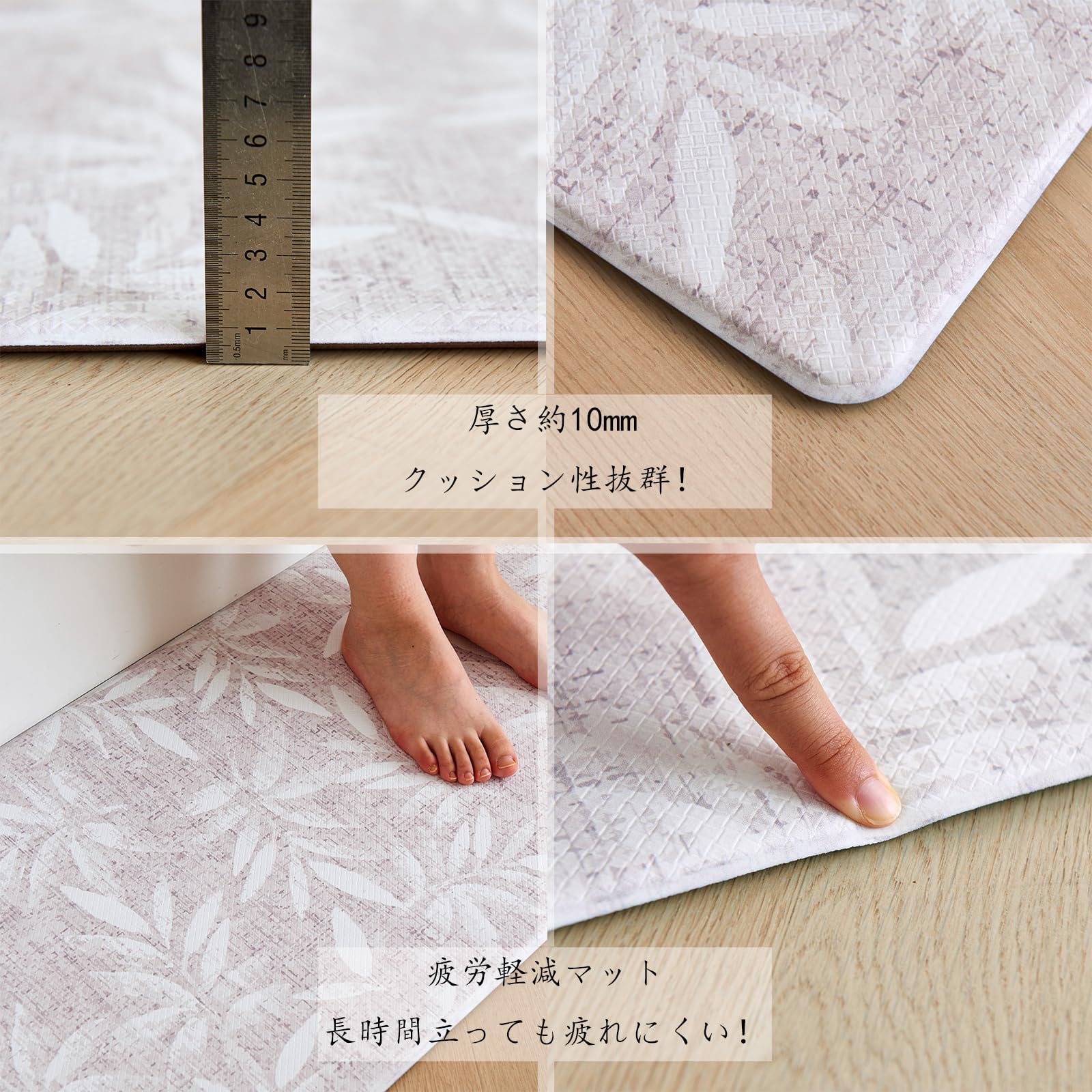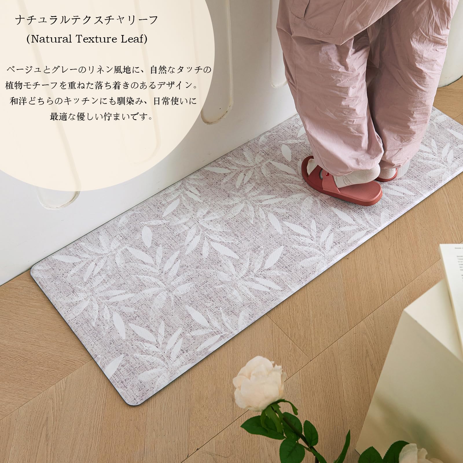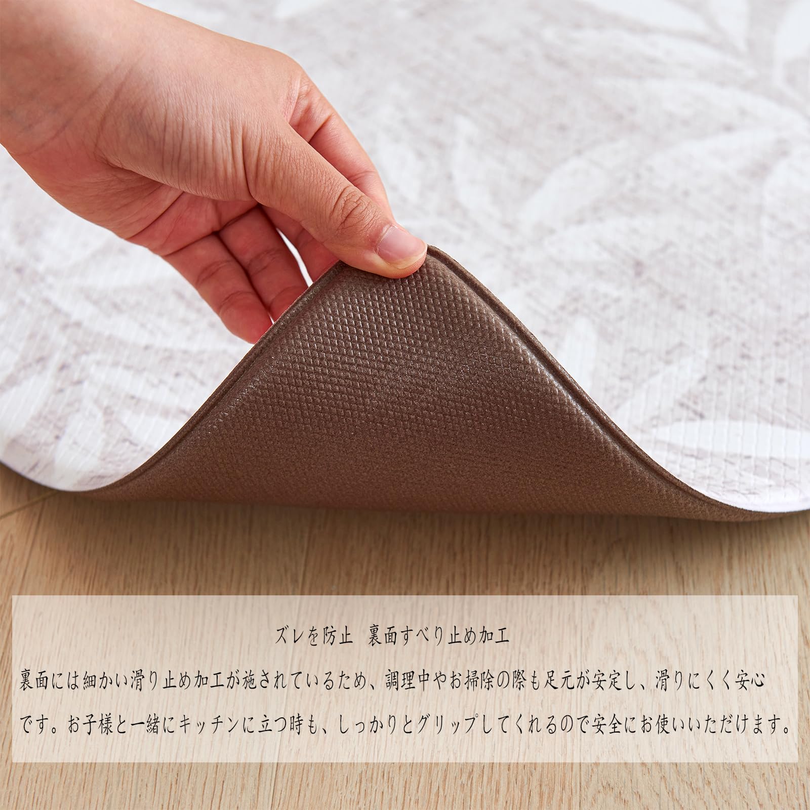 Koniroom キッチンマット 和モダン グレーベージュ 植物柄 拭ける 防水 防汚 防炎 滑り止め PVC 台所マット 45×180cm 厚さ10mm ナチュラル シンプル