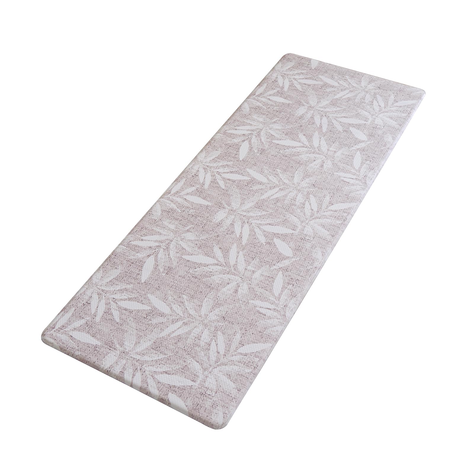 Koniroom キッチンマット 和モダン グレーベージュ 植物柄 拭ける 防水 防汚 防炎 滑り止め PVC 台所マット 45×120cm 厚さ10mm ナチュラル シンプル