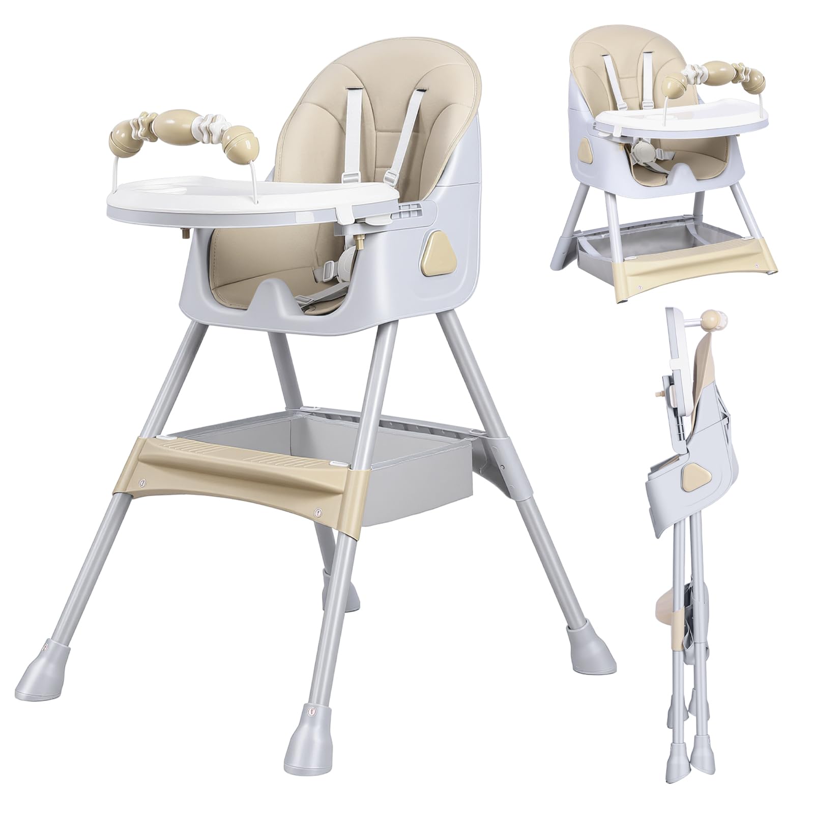 UBRAVOO ベビーチェア ハイローチェア キッズチェア 6ヶ月-3歳 折りたたみ 五点式安全ベルト 二段テーブル付き 収納袋付き 高さ調節 組立簡単 軽量 離乳食 多機能 赤ちゃん用 お食事椅子 テーブルチェア 持ち運び便利 出産祝い (カーキ)