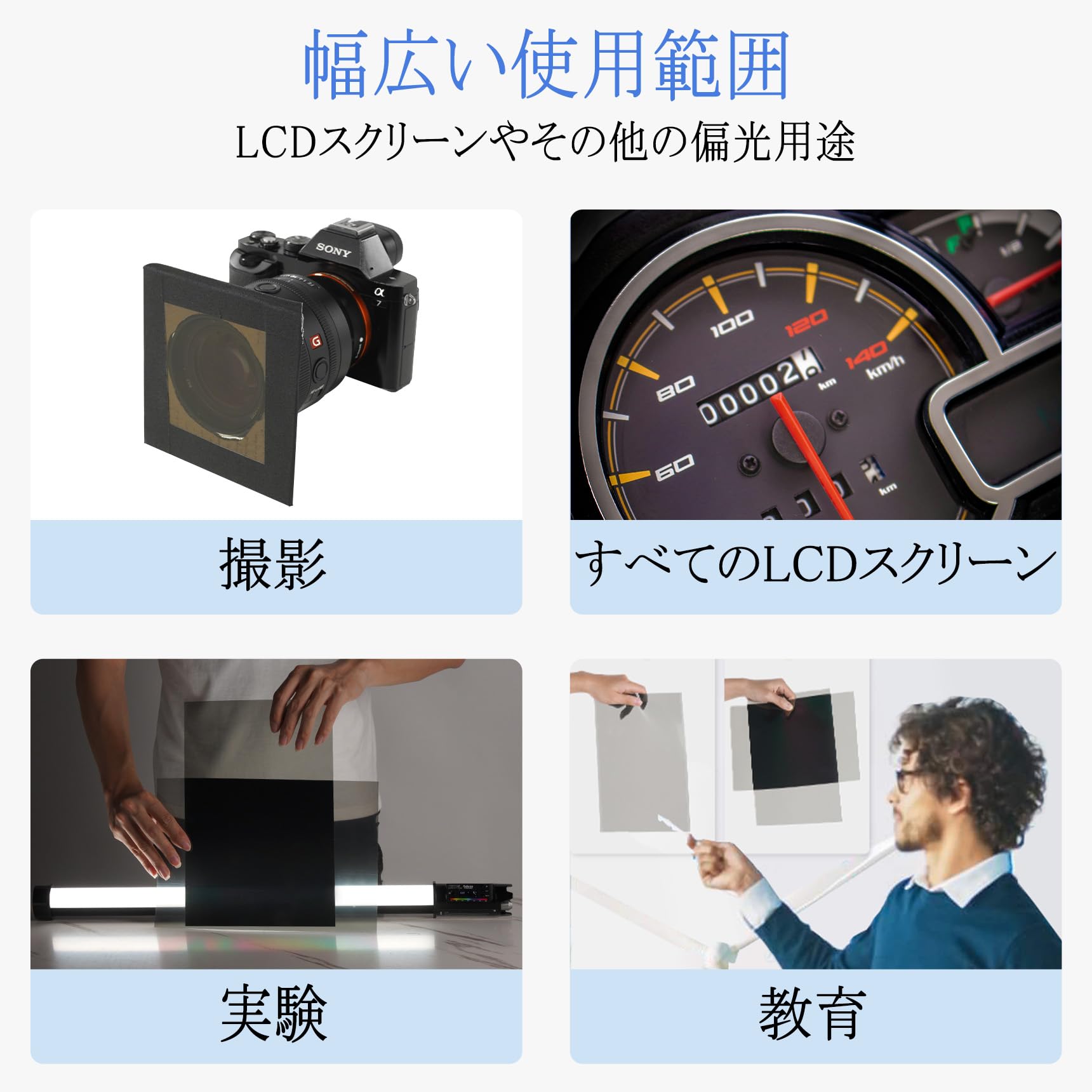 Selens 偏光フィルムシート 30x40cm 2枚入り 粘着偏光子液晶スクリーン 教育物理学用 撮影用 線形偏光フィルター