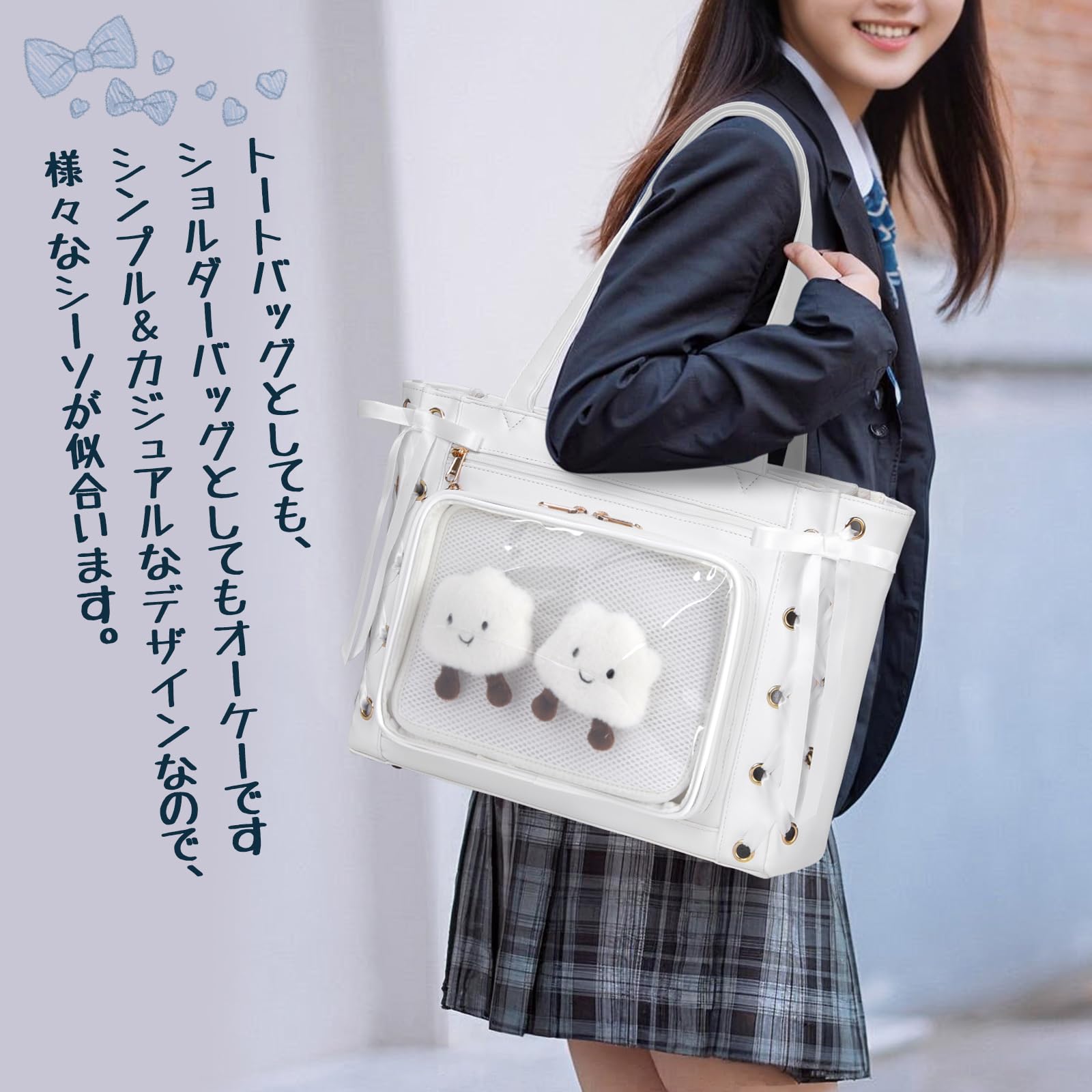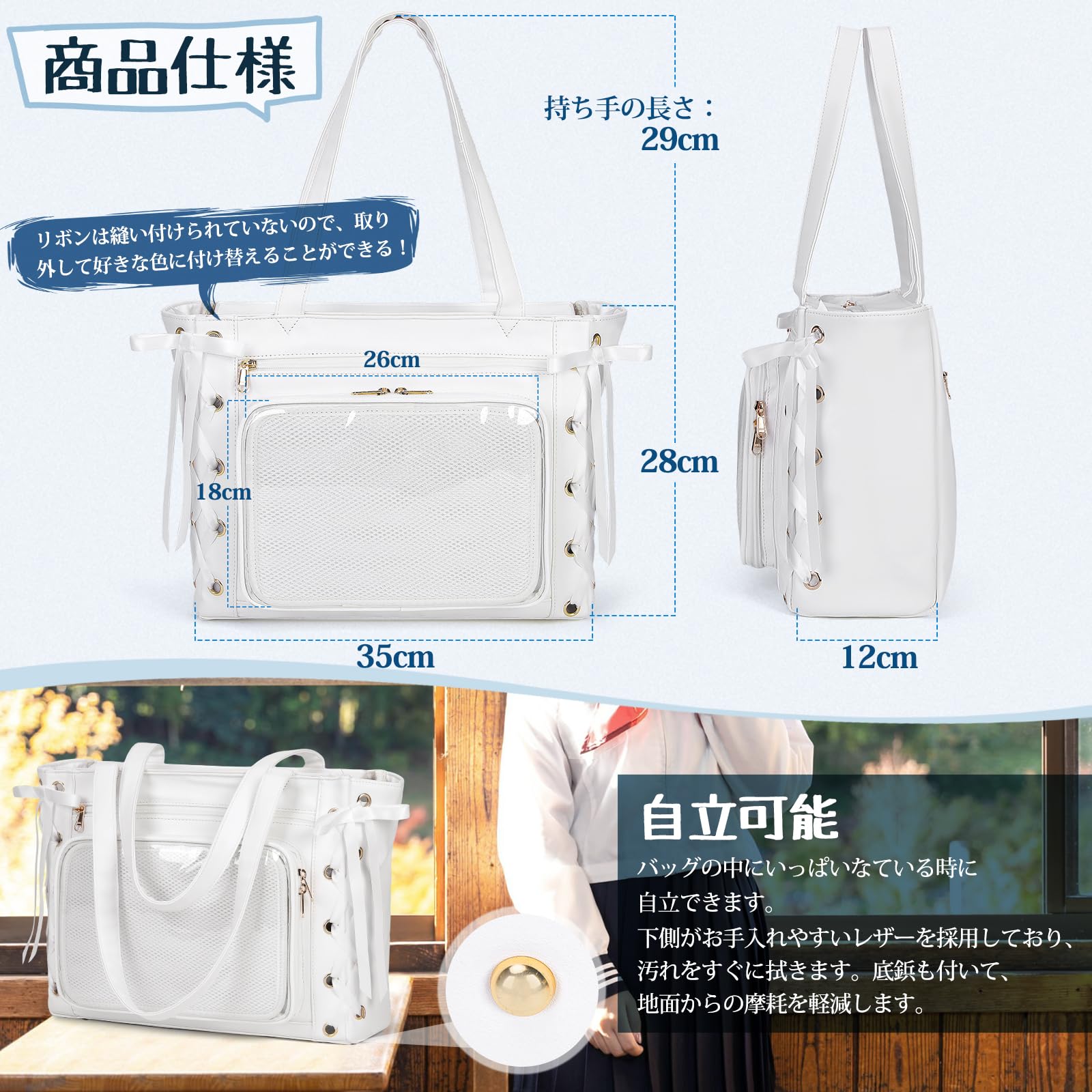 [NUBILY] 痛バッグ 痛バ メッシュデコシートを付き レースアップ トートバッグ レディース 大容量 撥水加工 自立 A4 ショルダーバッグ 推し活 オタ活 お出かけ アニメ 漫画 ブラック ホワイト
