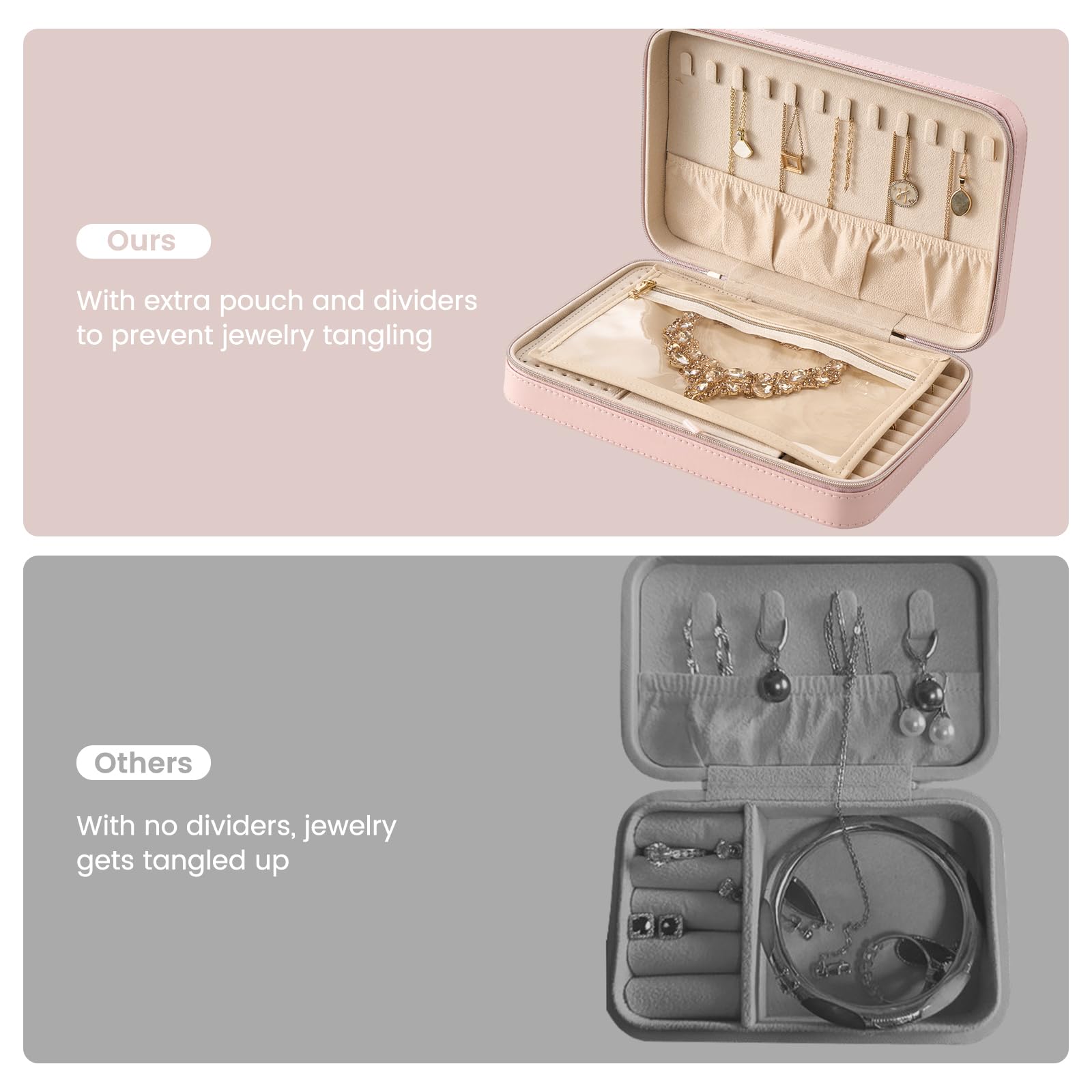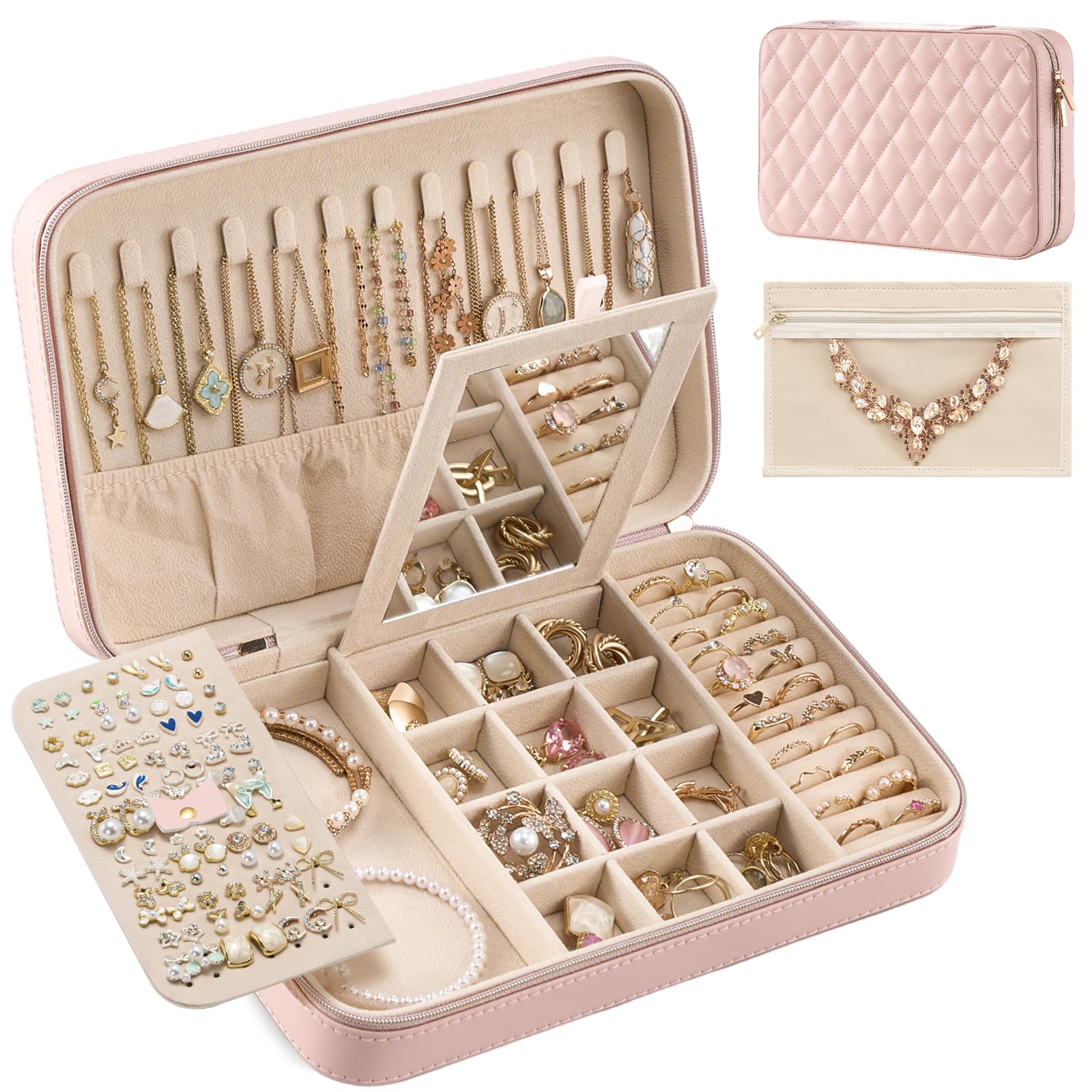Vlando 誕生日プレゼント女性 ジュエリーボックス プレゼント 携帯用 鏡付き ジュエリーボックス トラベル 結婚祝い プレゼント 記念日 バレンタイン 退職 祝い 贈り物(ピンク)