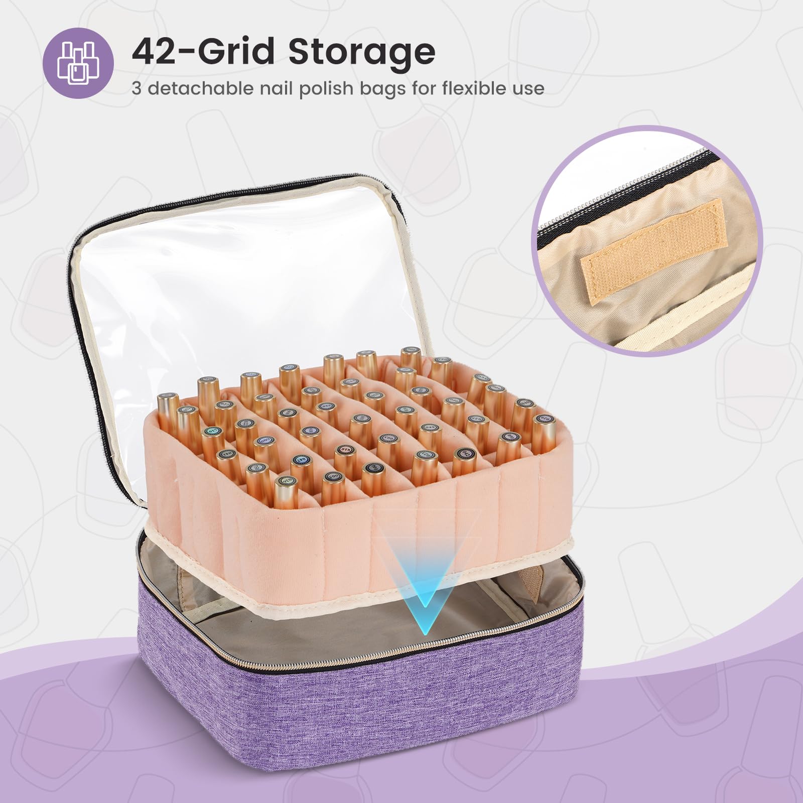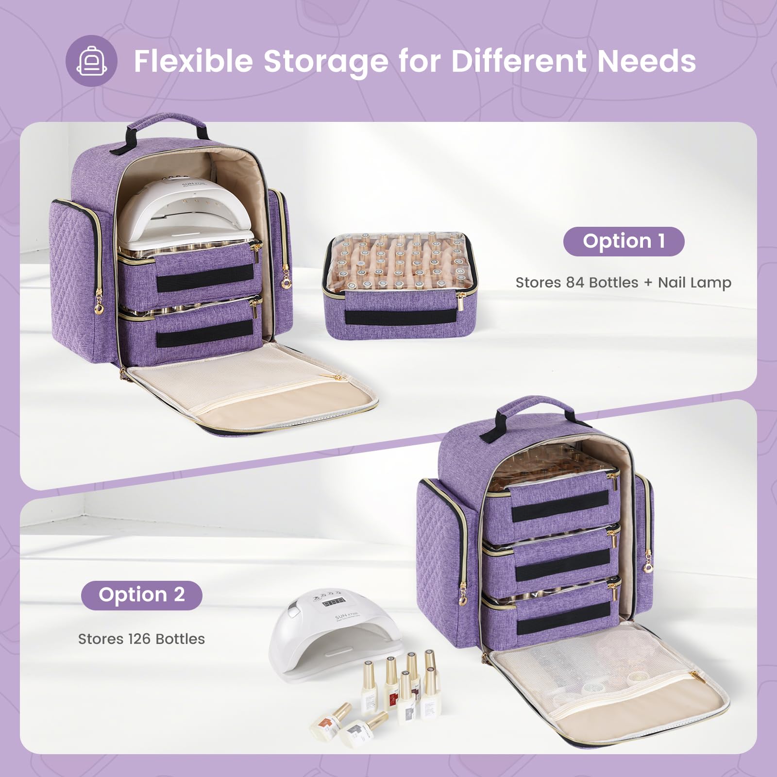 Hautton ネイルケース マニキュア収納バッグ 特大容量 ネイルポリッシュ用品126本収納可能 3層引出し プロ仕様の丈夫なネイルポリッシュトラベルケース ネイリスト用 -パープル