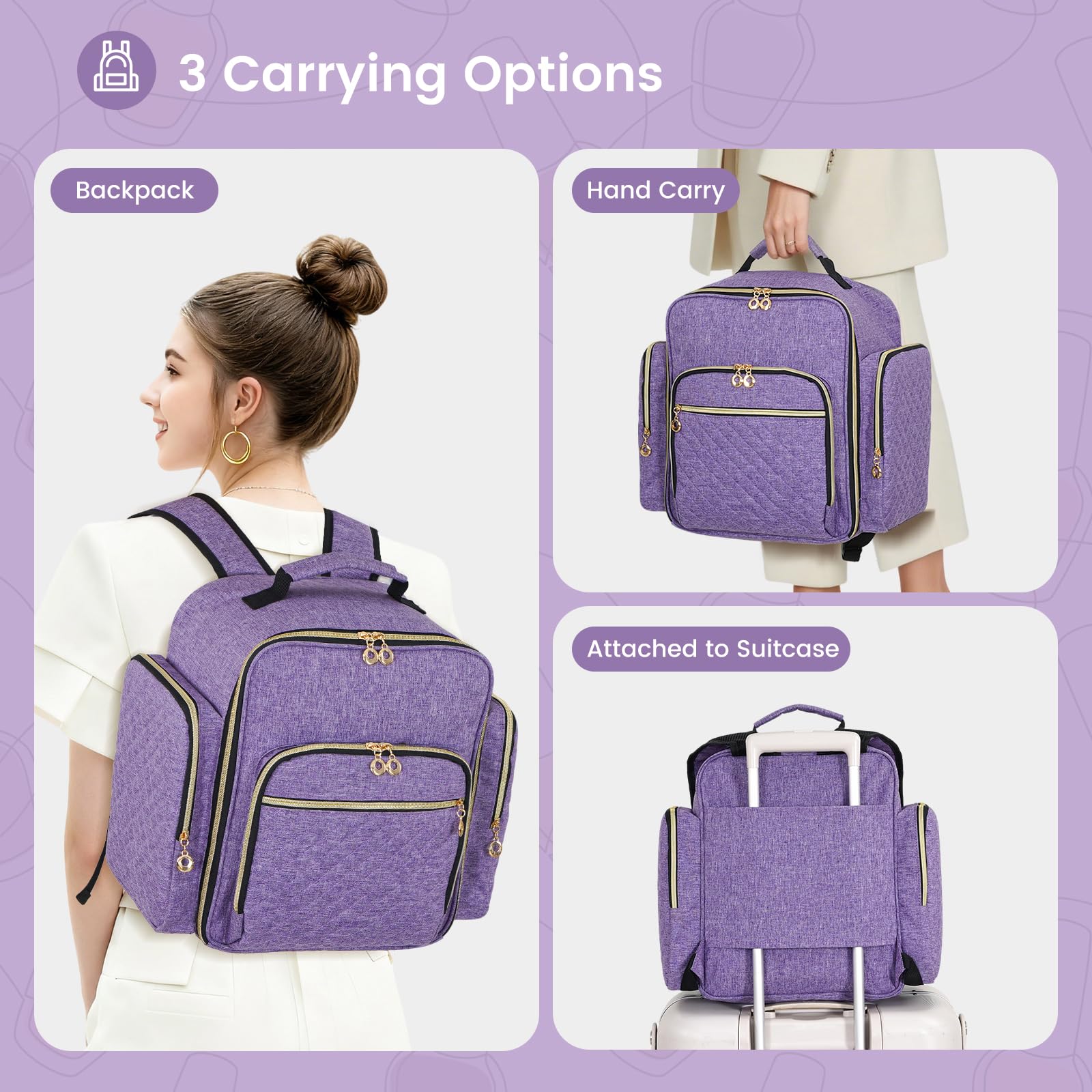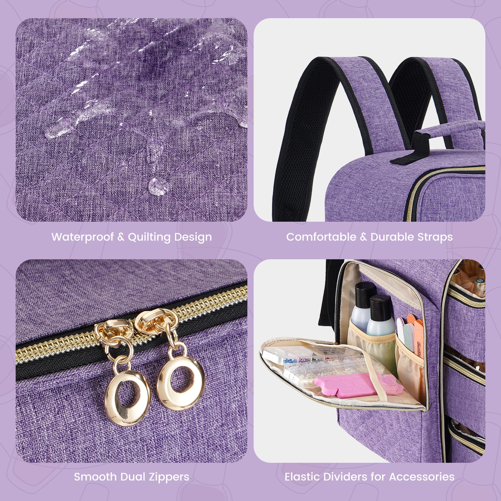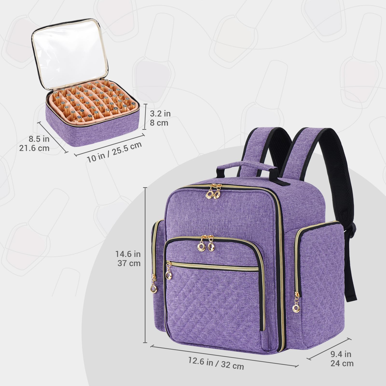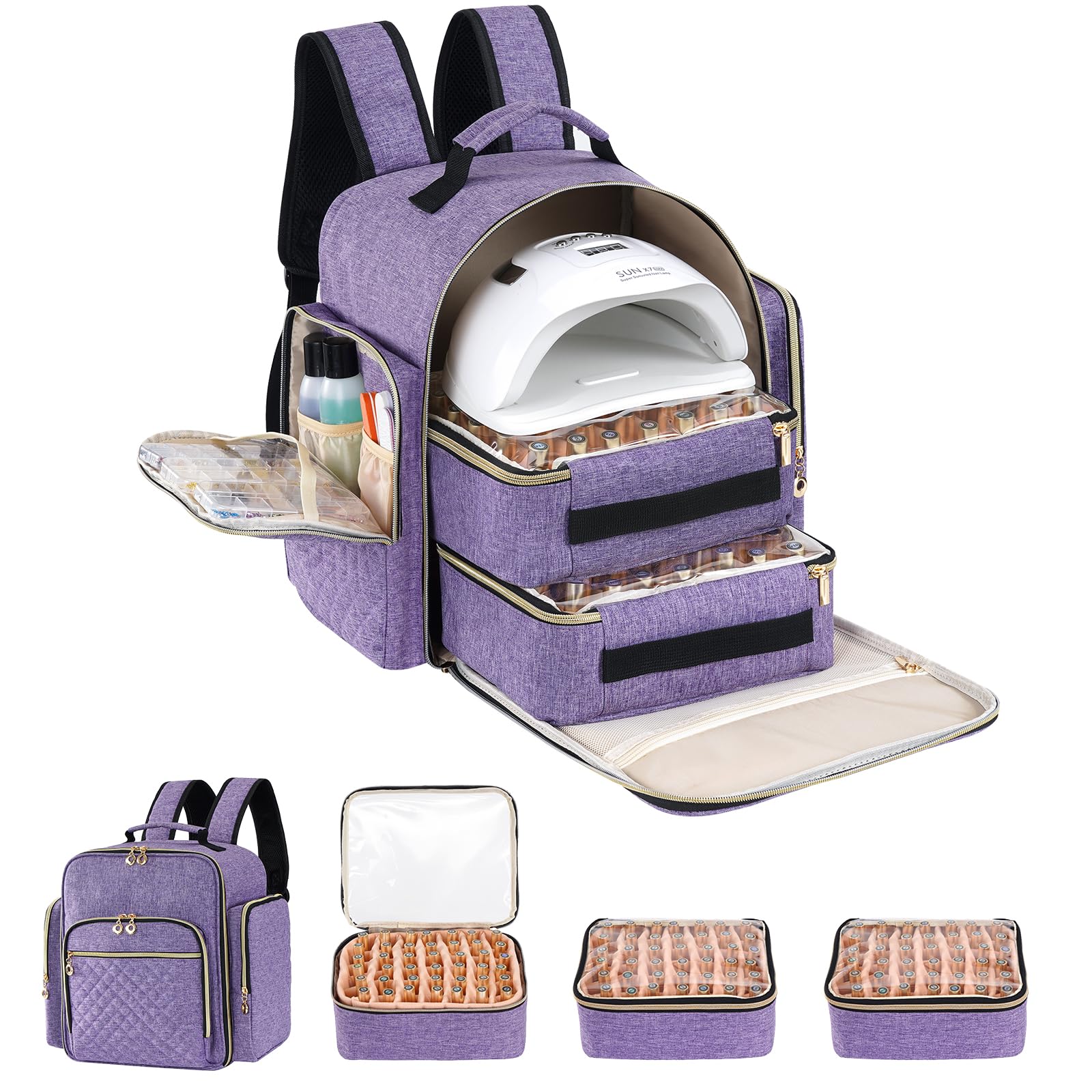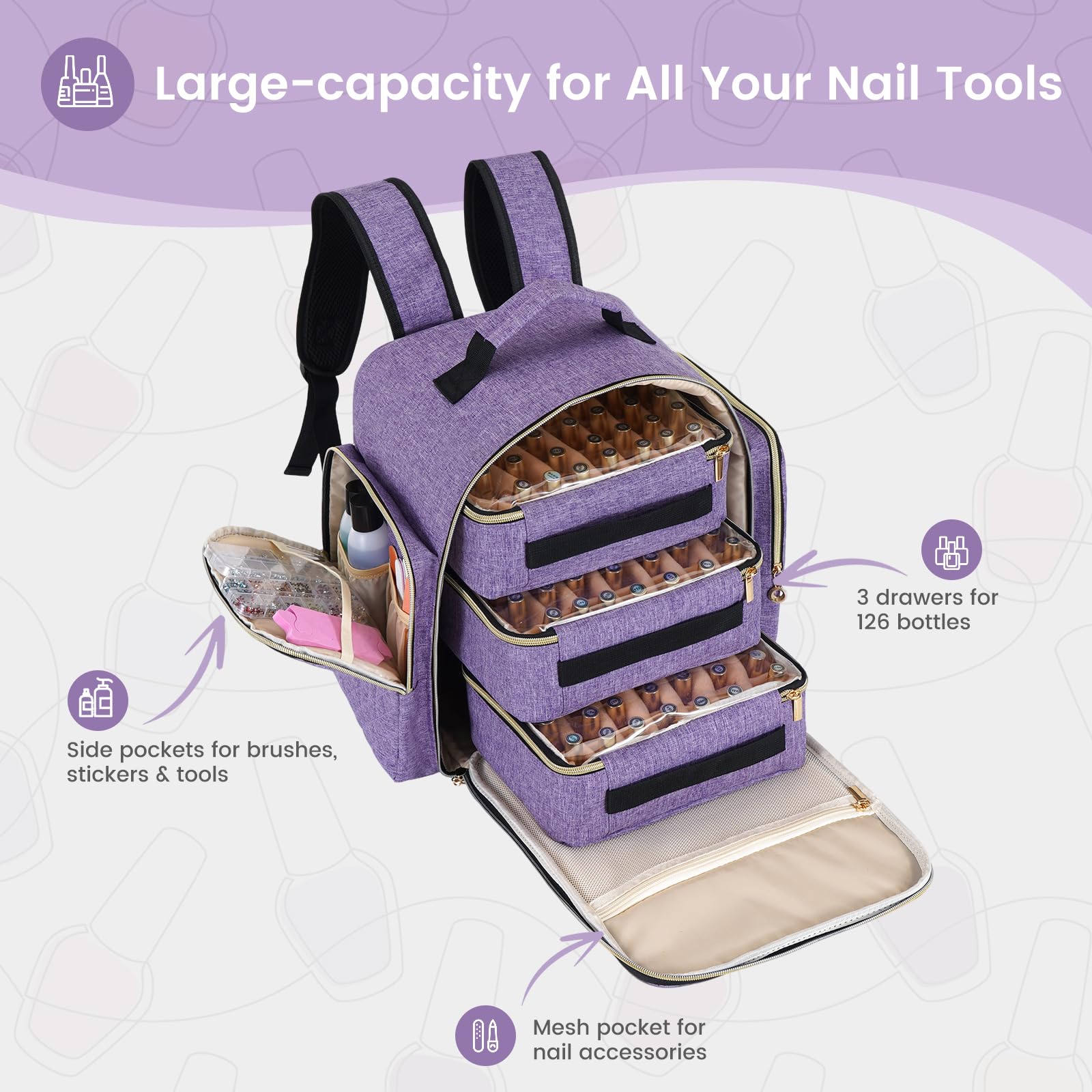 Hautton ネイルポリッシュオーガナイザー 126本収納可能、ネイルポリッシュランプ用品用引き出し3つ付き特大収納バッグ、マニキュアリスト用プロ仕様の丈夫なトラベルケース -パープル
