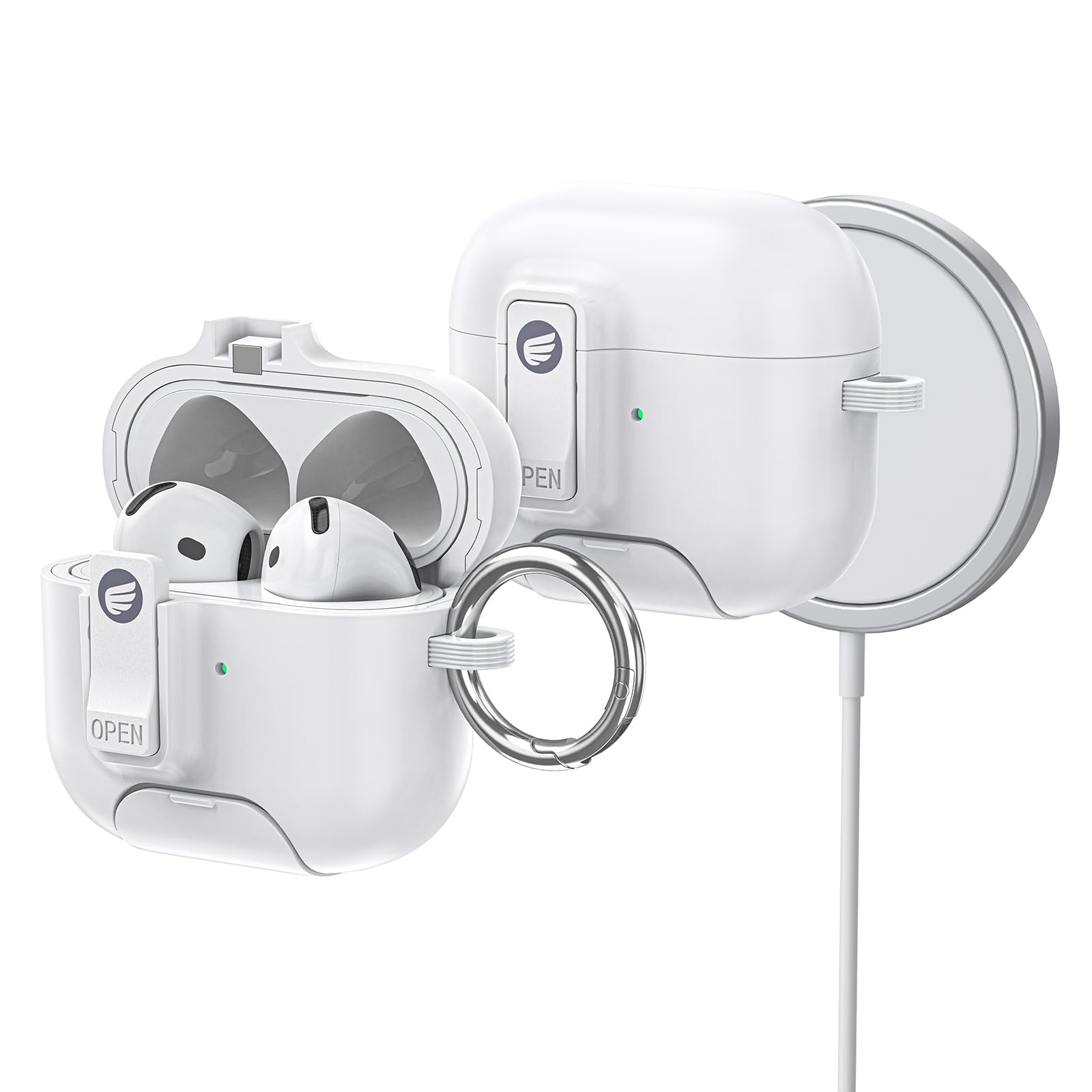 【MAXIA】AirPods 4 ケース カラビナ付き ミニスーツケース風AirPods4ケース ワイヤレス充電可能 MA-04 (ホワイト)