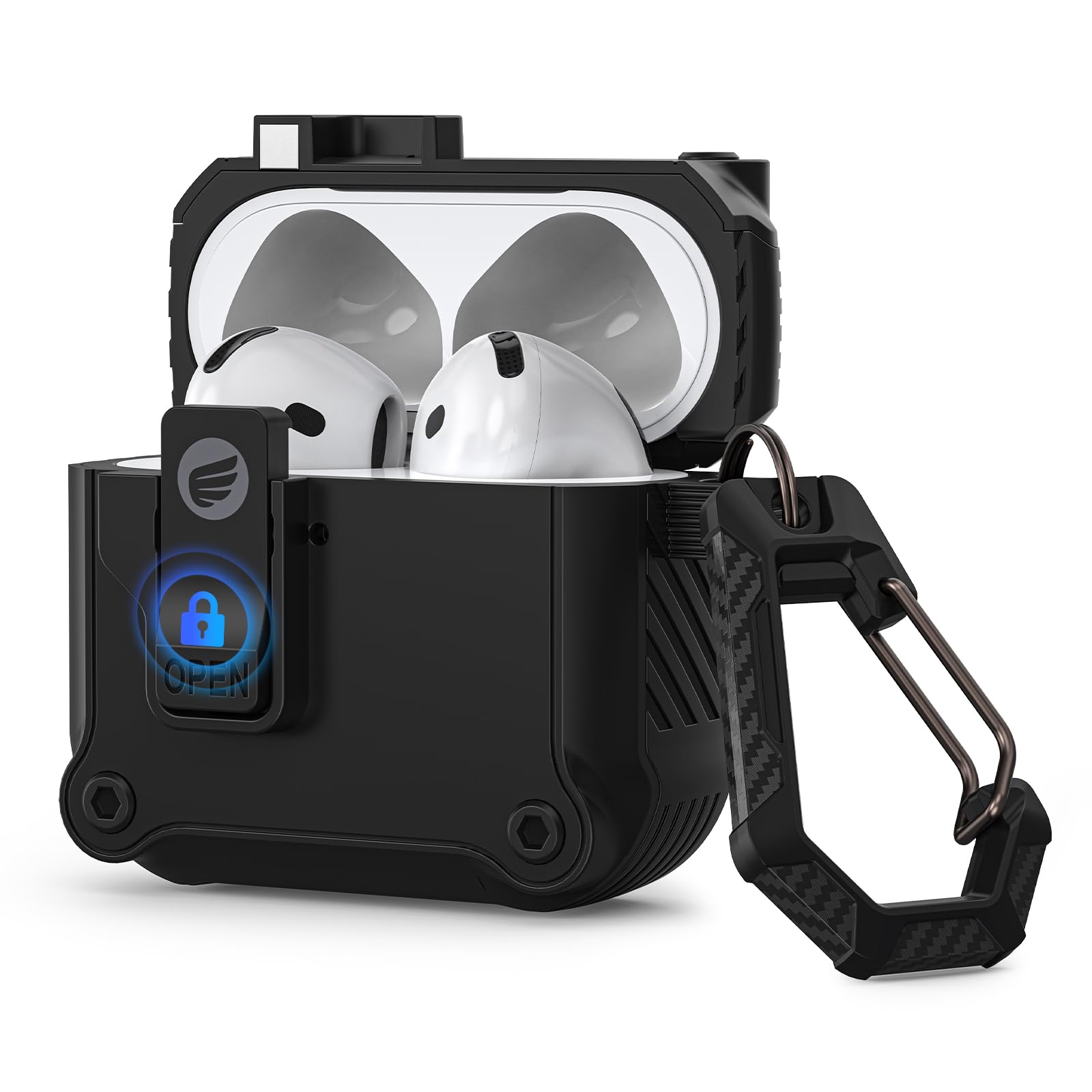 AirPods 4ケース、キーチェーン付きソフトシリコーン保護カバー、ブラック(ブラック、AirPods Pro 1/2)