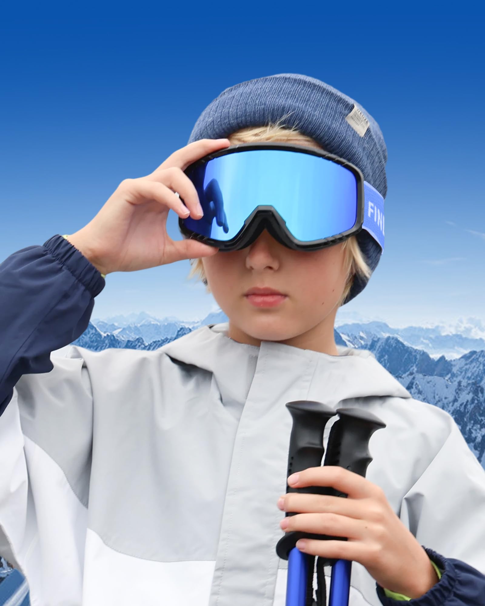 [Findway] スキーゴーグル キッズ スノーゴーグル 子供用、OTG広視野球面レンズ着脱可能、 防風/防雪/曇り防止 紫外線防止 キッズスポーツ用ゴーグル 軽量と耐衝撃 適用8-14歳 ボーイズガール
