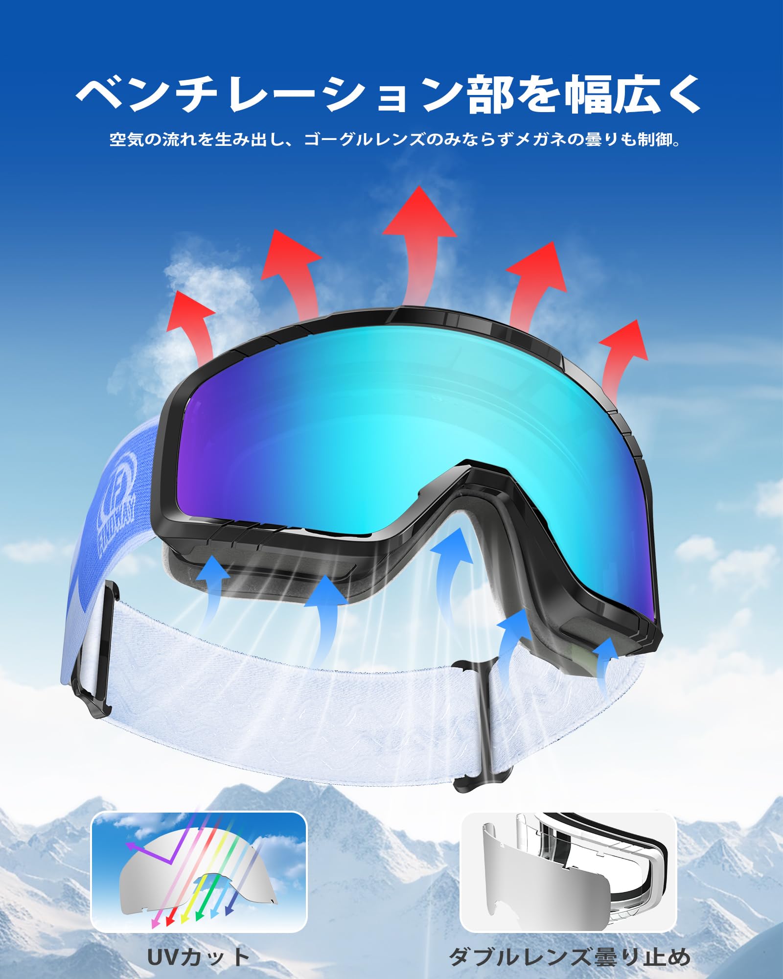 [BEACOOL] 新登場 スキーゴーグル スノーゴーグル スノーボードゴーグル 大き広視野レンズ スノーモービル サバイバルゲーム 冬山登山 バイク 通気/曇り防止 防風/防雪/防塵 UV400 紫外線防止 全天候対応 レディース メンズ 大人 ユース ユニセックス スポーツゴーグル 耐衝撃安全