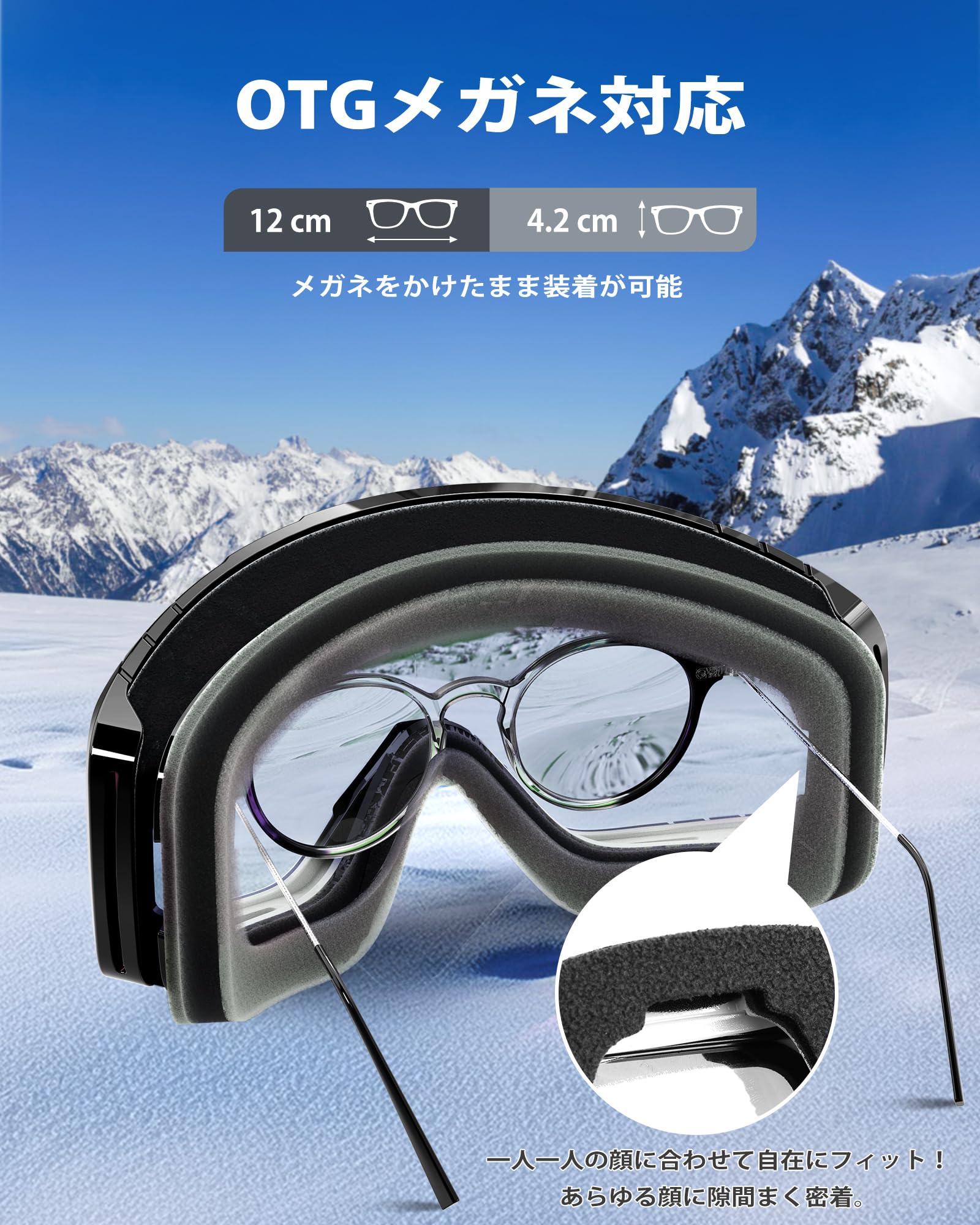[RIOROO] スキーゴーグル スノーボードゴーグル OTGメガネ対応 広視野 球面レンズ 100% UVカット 曇り止め 防風/防雪 柔軟 耐衝撃 メンズ レディース 大人 ユース